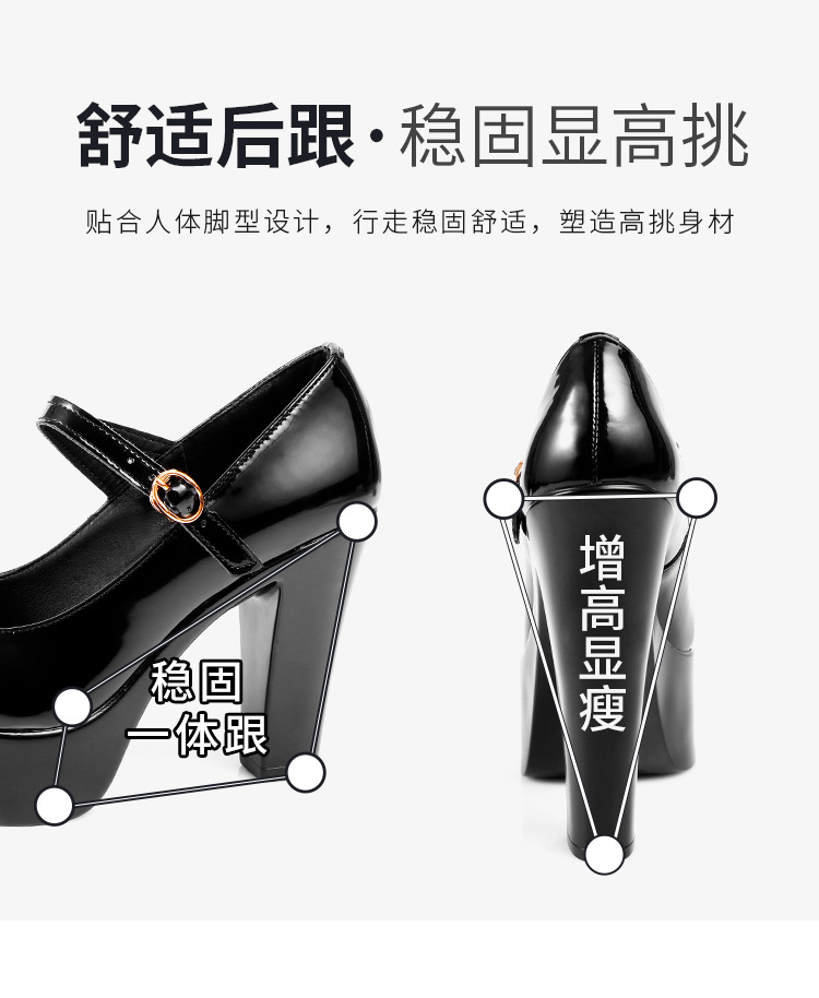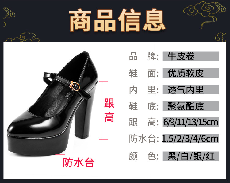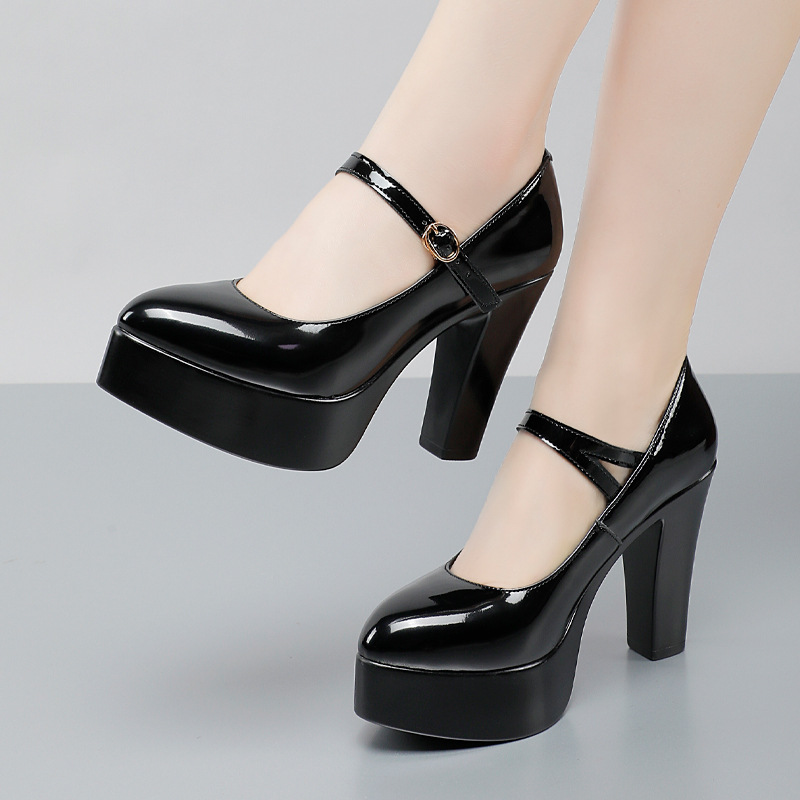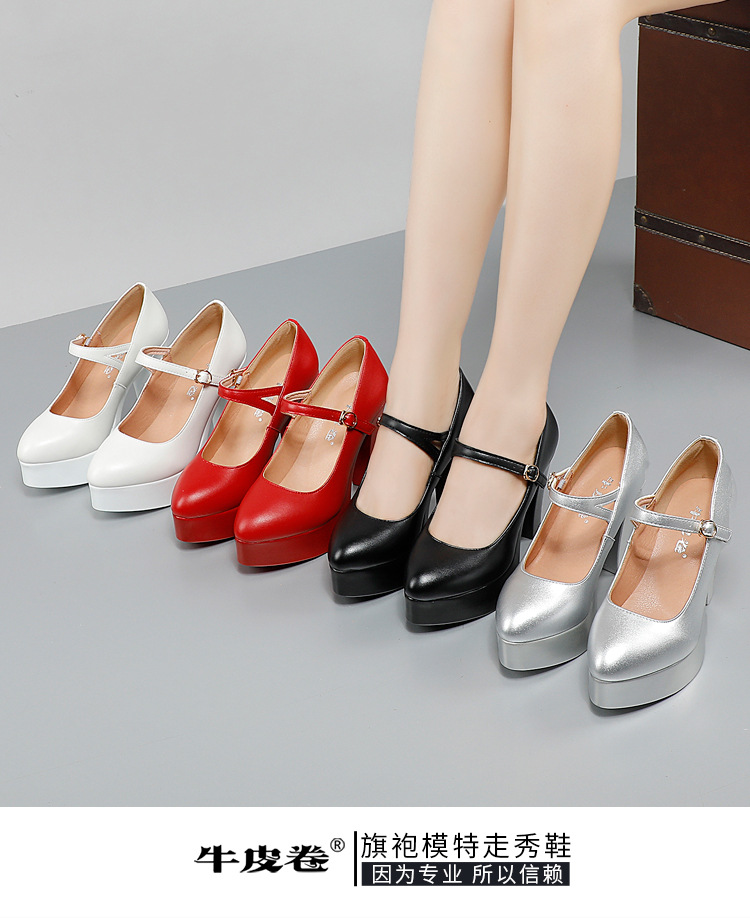페이턴트 가죽 하이힐 여성용 치파오 쇼 신발 스트레이트 버클 얕은 입 뾰족한 발가락 청키 힐 모델 신발 크기 및 크기 전문 신발스토어 가기