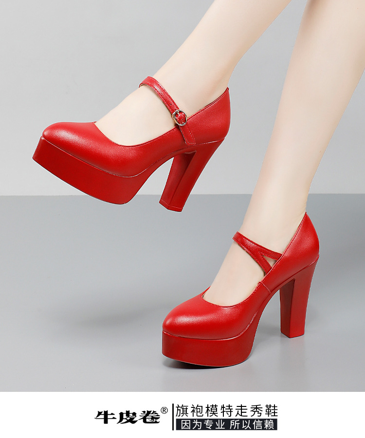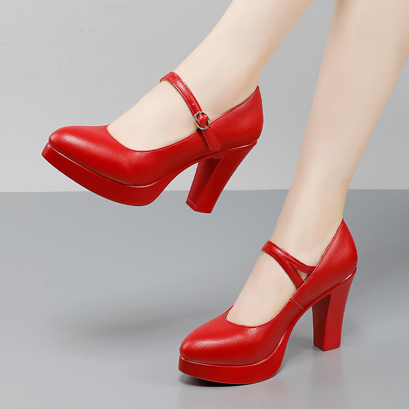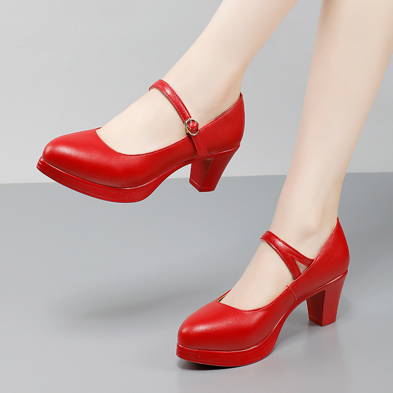 • 두꺼운 발 뒤꿈치 뾰족한 빨간색 6cm