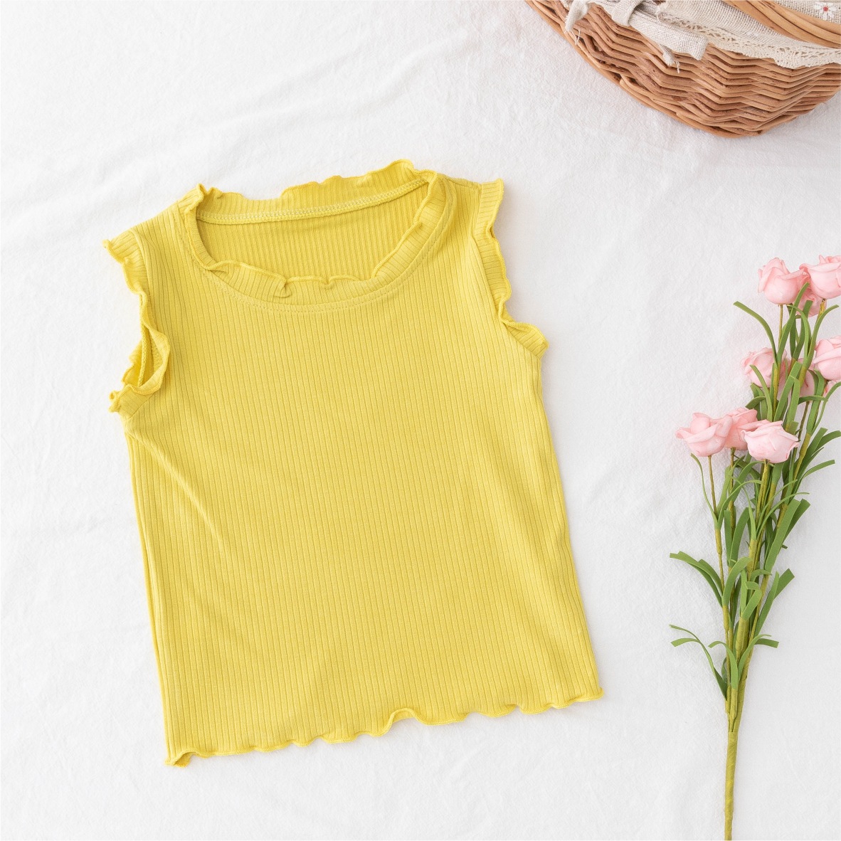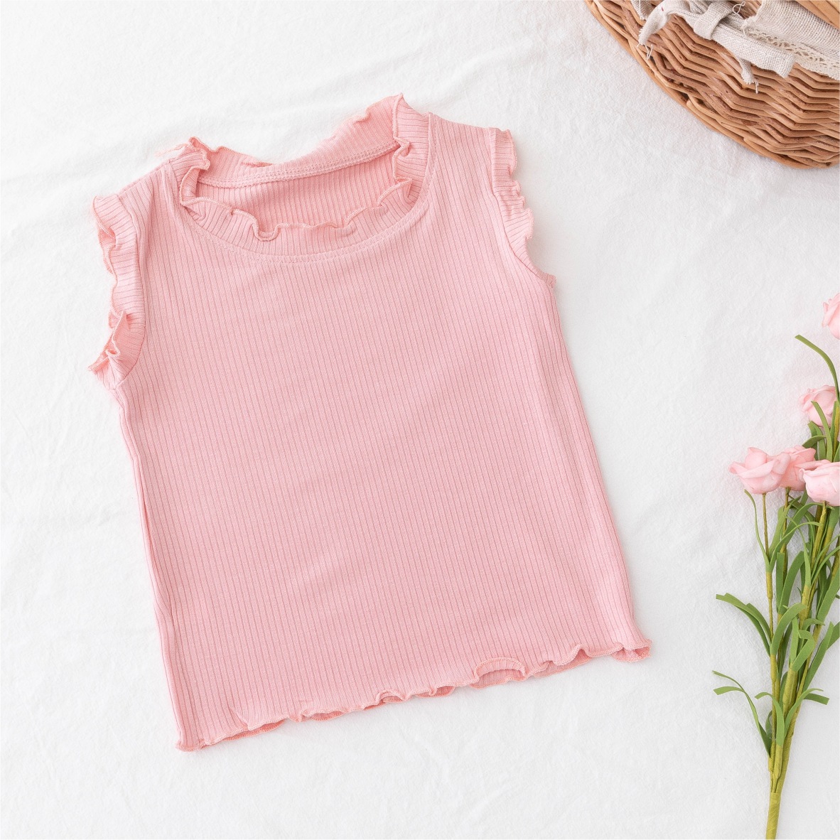 여아 여름 반팔 티셔츠 라운드 넥 한국 용품 아동복 새로운 아동 조끼 단색 베이스 니트 6 내부 탑스토어 가기