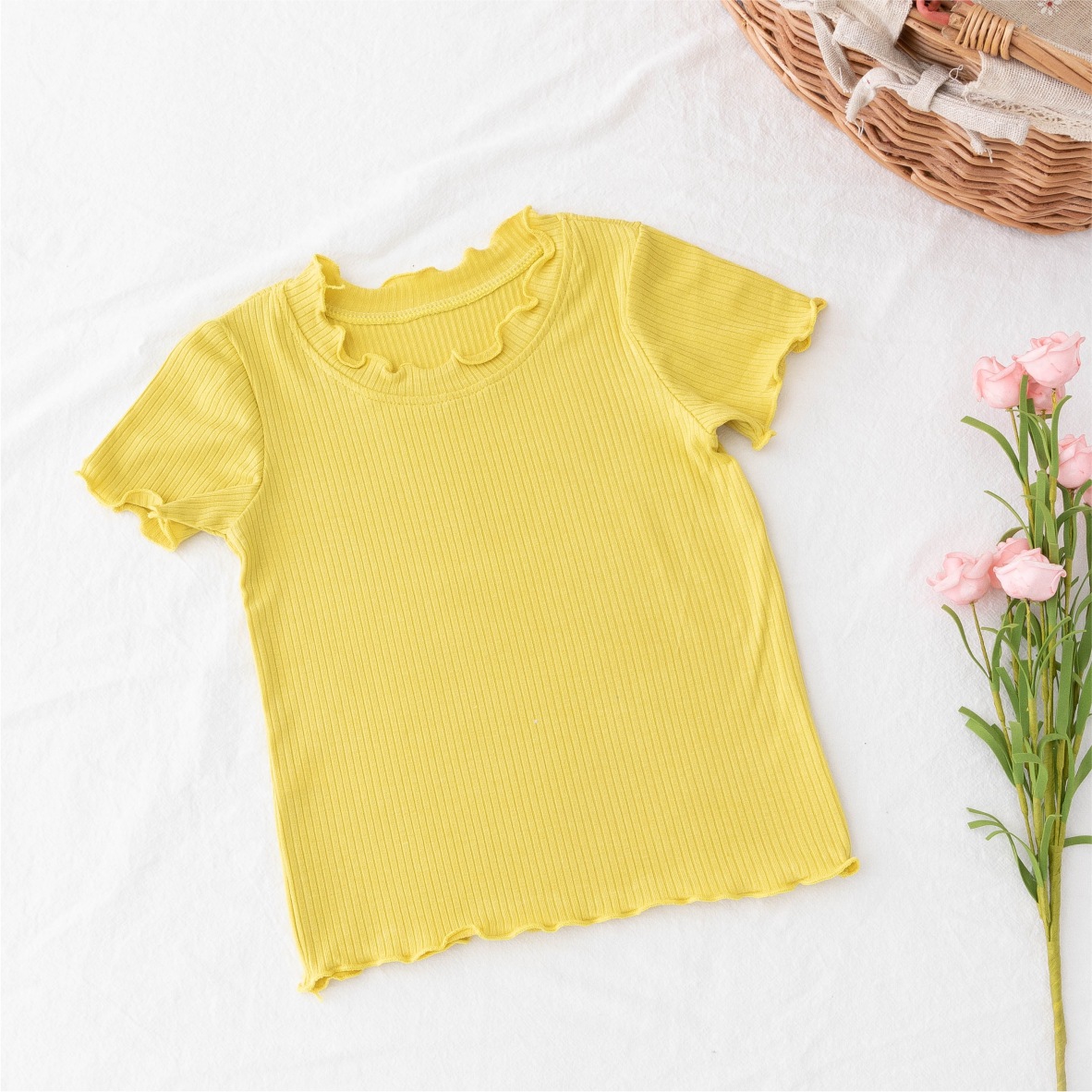여아 여름 반팔 티셔츠 라운드 넥 한국 용품 아동복 새로운 아동 조끼 단색 베이스 니트 6 내부 탑