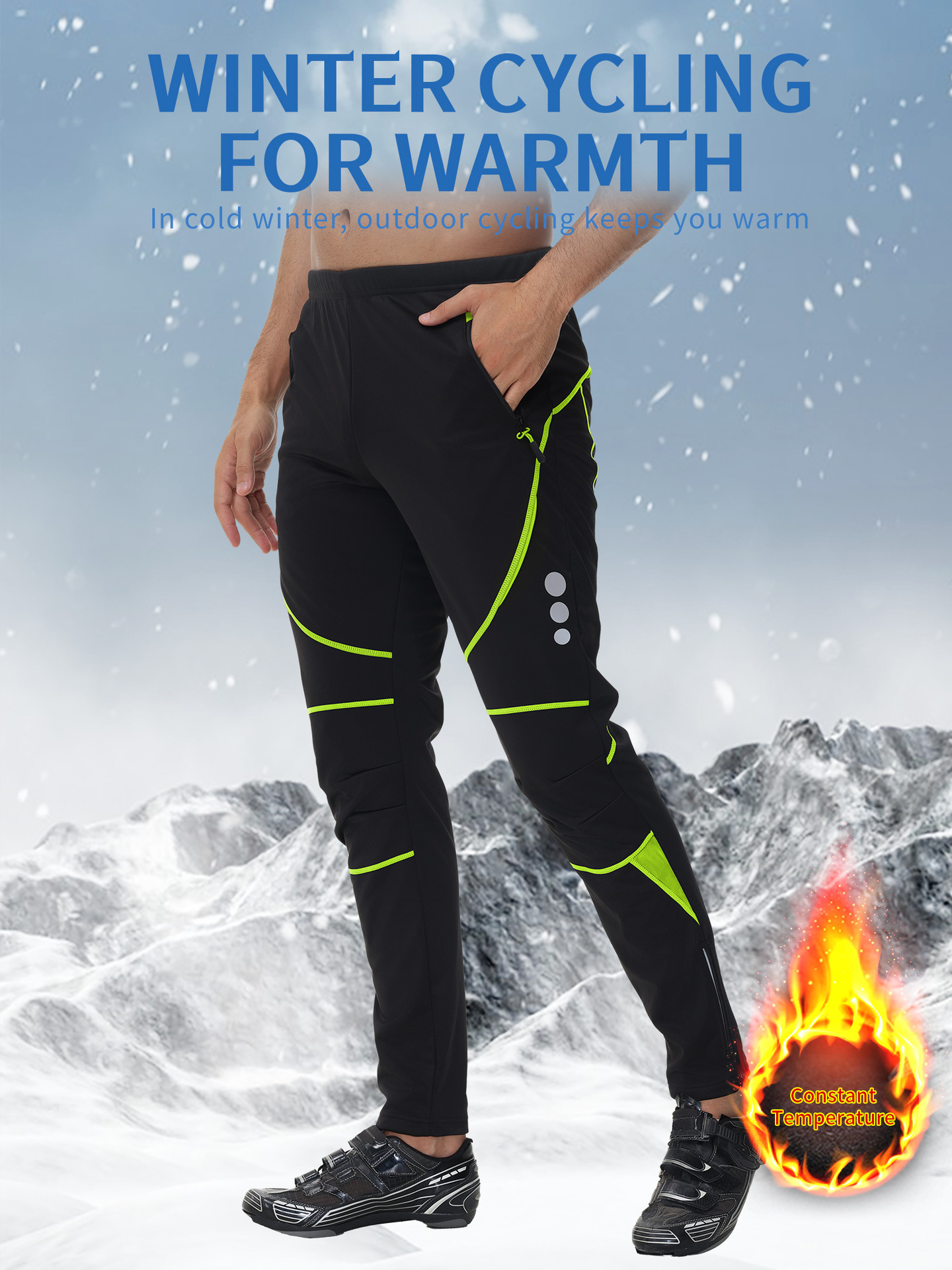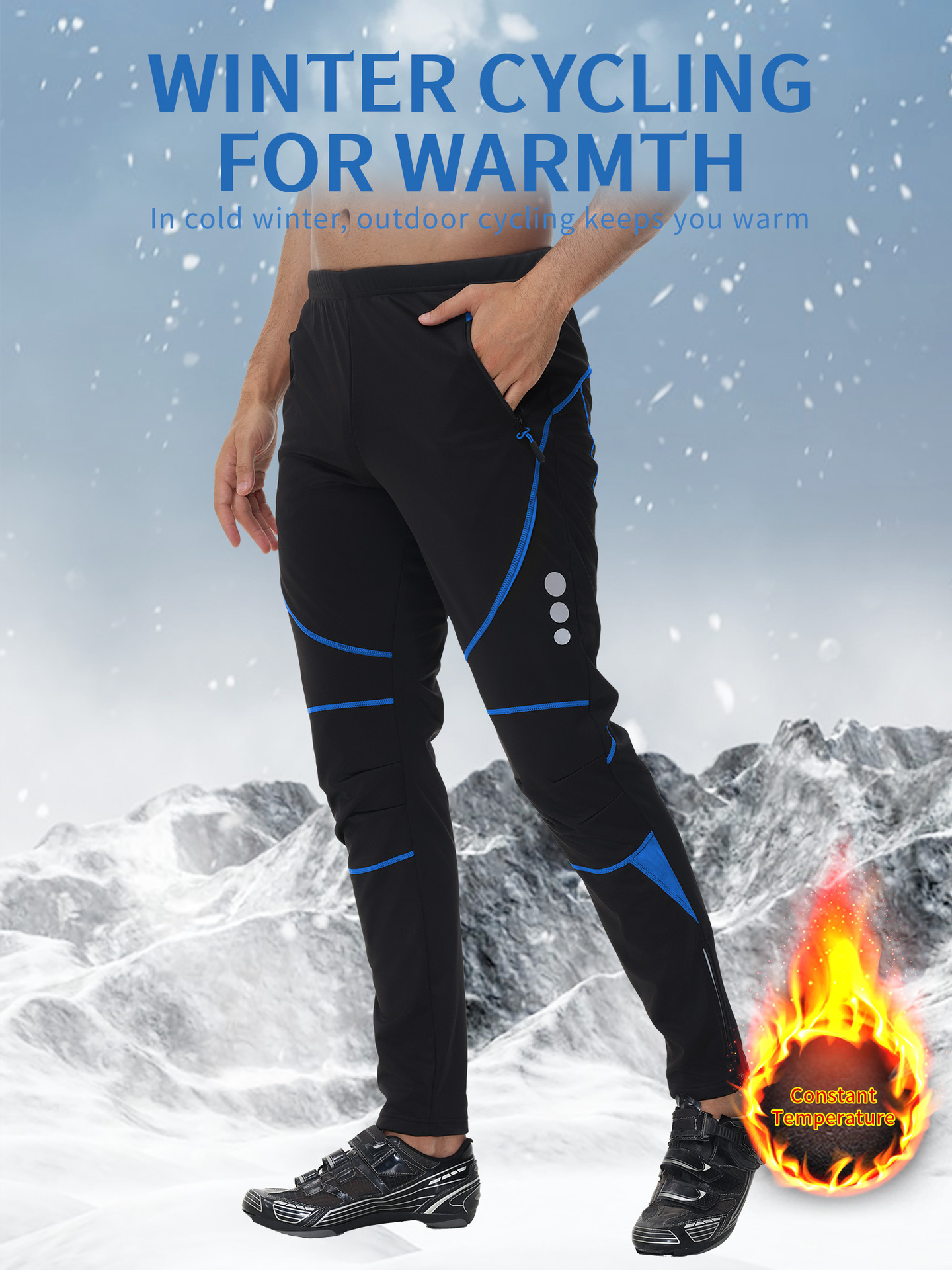 跨境冬季加绒防寒保暖男士运动登山骑行裤反光加绒防风山地骑行服