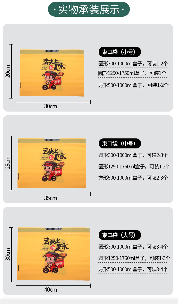 테이크 아웃 포장 플라스틱 번들 포켓 서랍 핸드백 Lala 가방 케이터링 식품 상업 포장 맞춤 로고스토어 가기