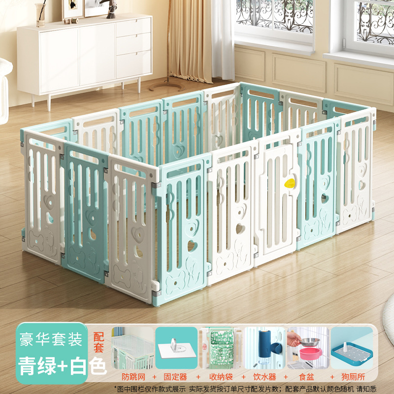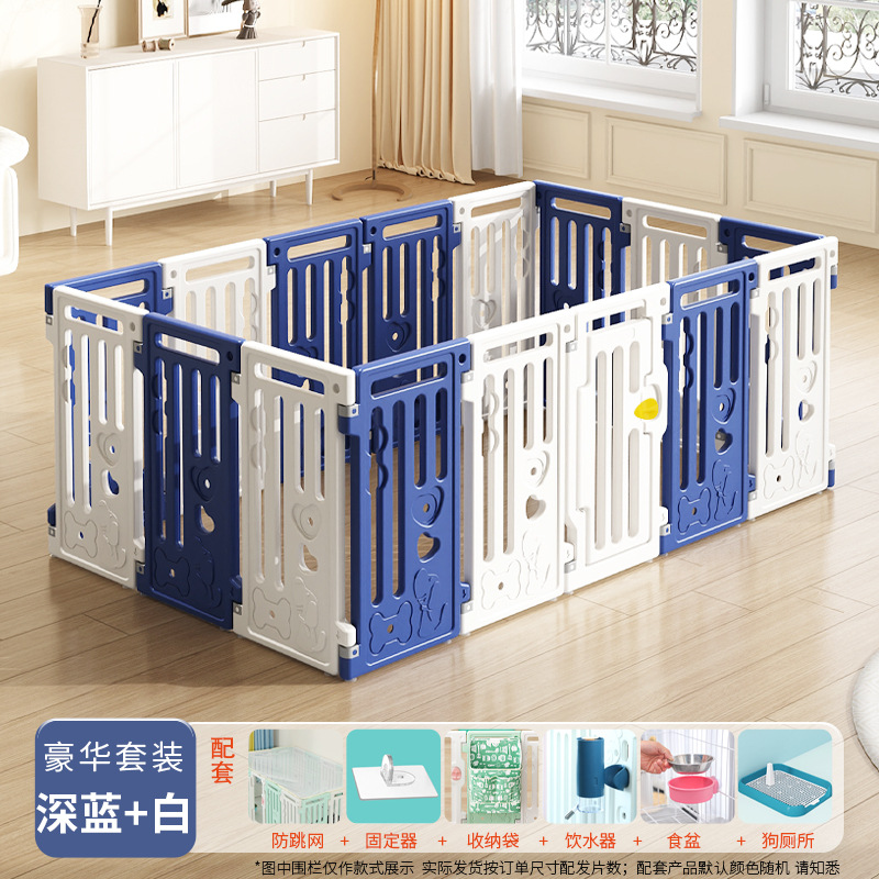 • [럭셔리 세트] 파란색과 흰색 울타리 + 점프 방지 그물 + 고정 장치 + 보관 가방 + 술꾼 + 그릇 + 개 화장실
