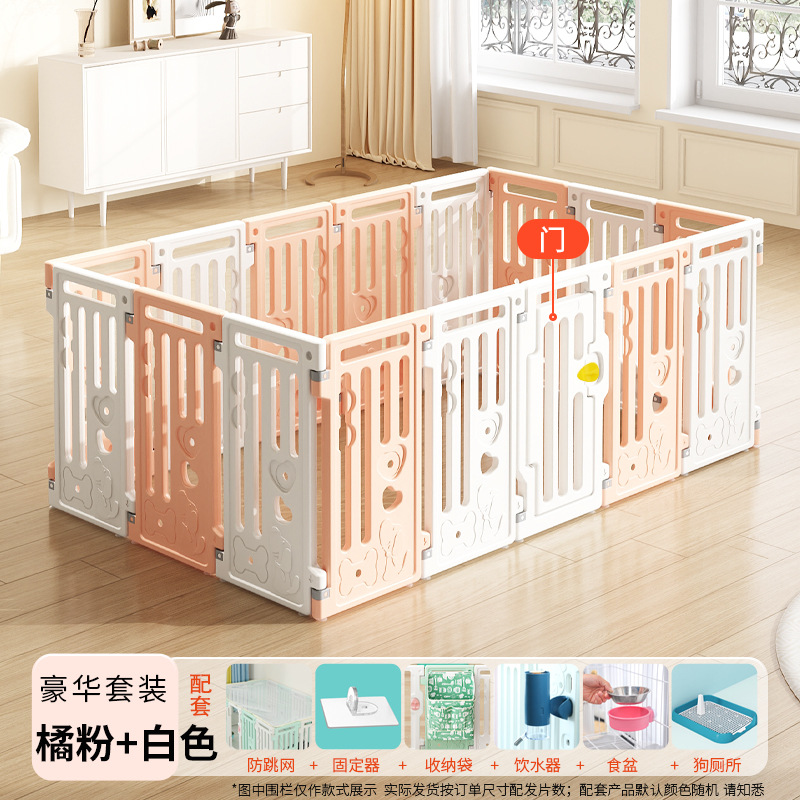 • [럭셔리 세트] 핑크 화이트 울타리 + 점프방지망 + 해결사 + 보관가방 + 술꾼 + 그릇 + 강아지 화장실