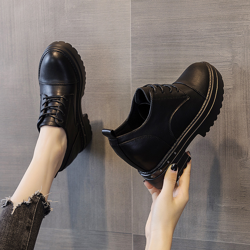 여성용 가죽 신발 2025 봄 신상 두꺼운 밑창 캐주얼 신발 여성용 영국 스타일 레이스업 패션 신발 여성용 키높이 플랫폼스토어 가기
