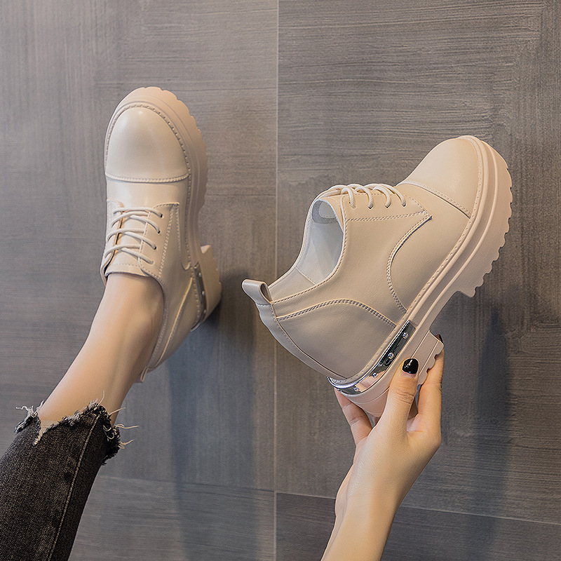여성용 가죽 신발 2025 봄 신상 두꺼운 밑창 캐주얼 신발 여성용 영국 스타일 레이스업 패션 신발 여성용 키높이 플랫폼