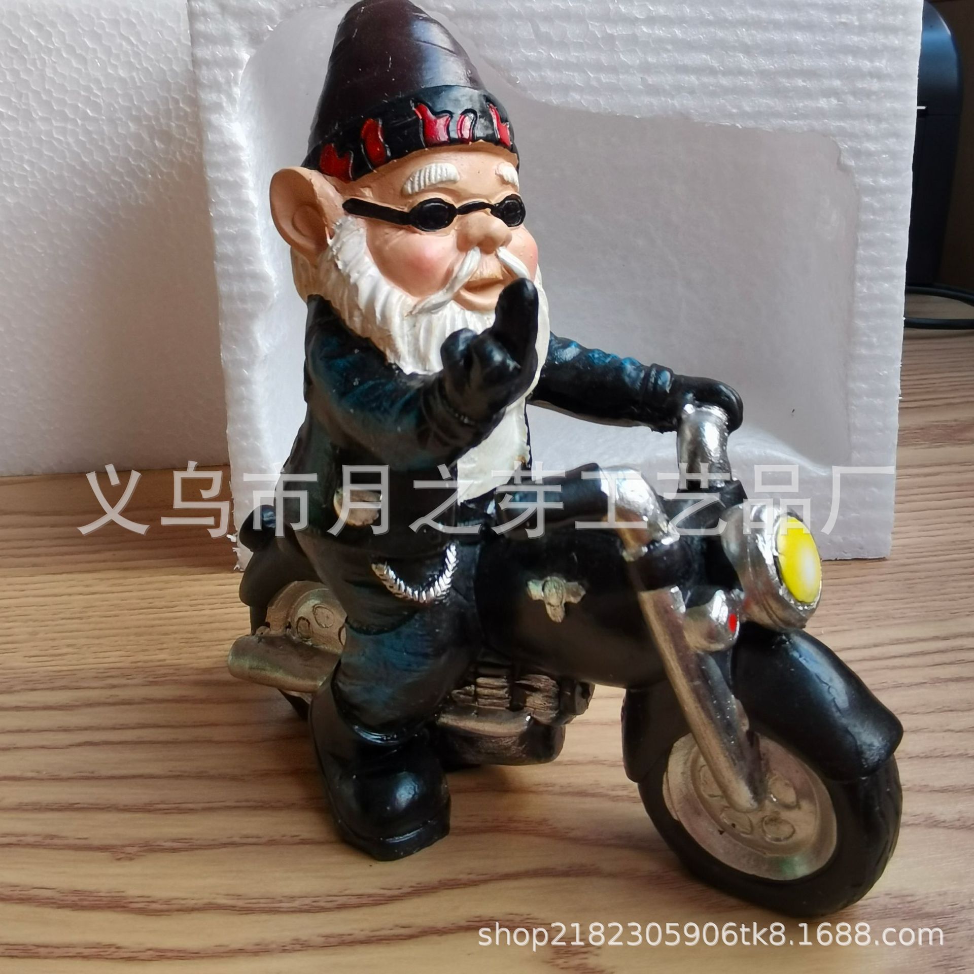 정원 난쟁이 동상 흰 수염 노인 승마 오토바이 난쟁이 장식품 야외 정원 재미있는 동상