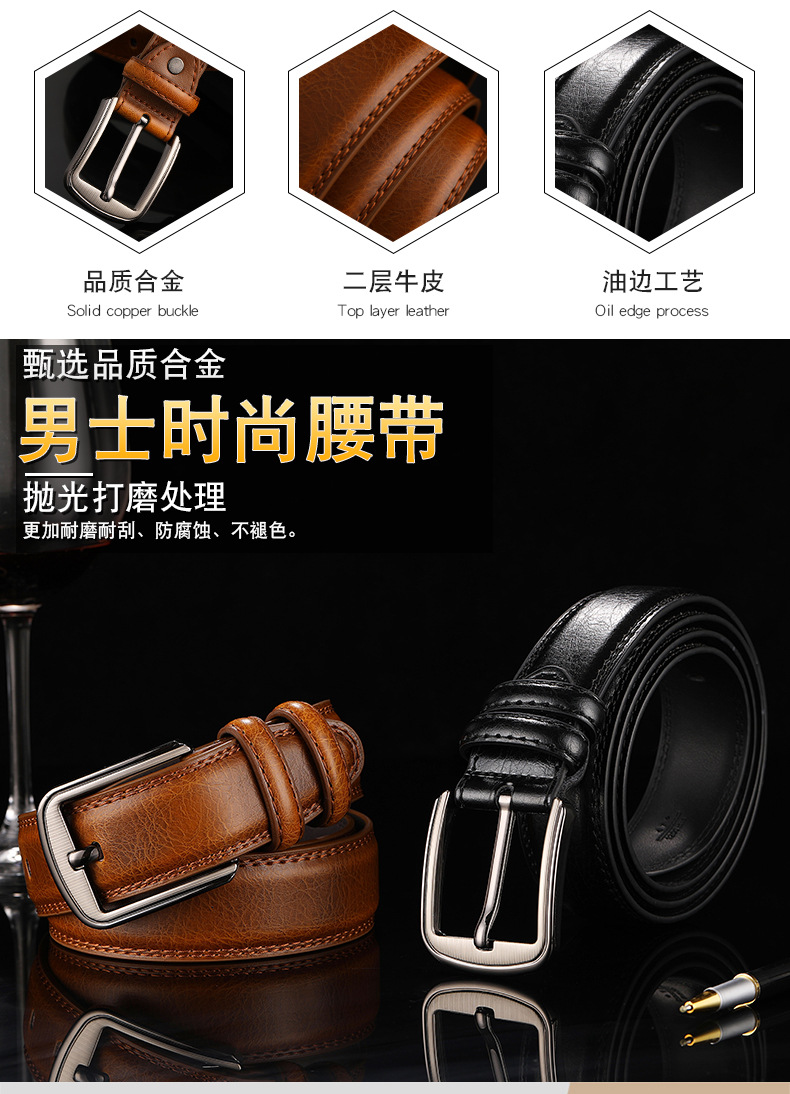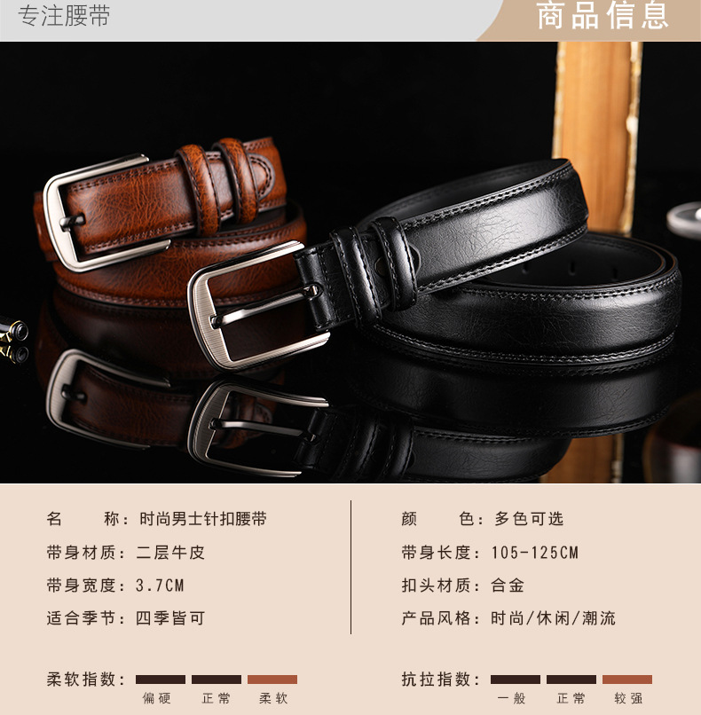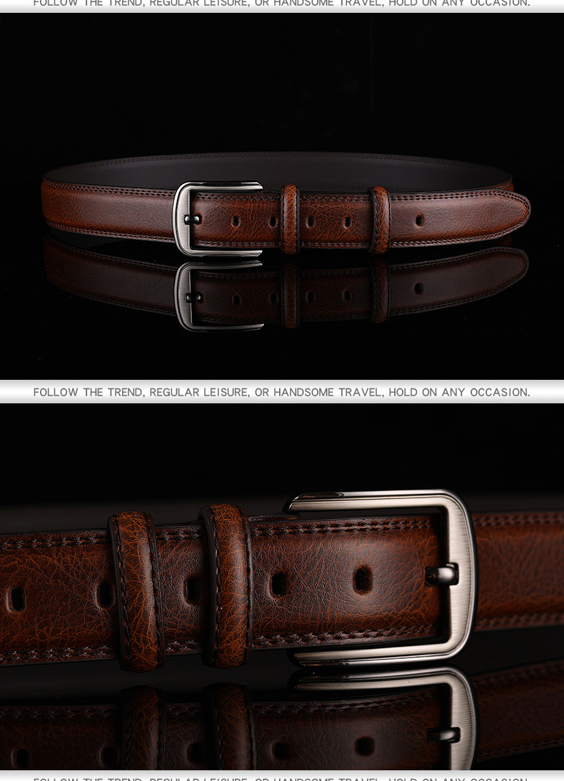 벨트 남자의 벨트 소년 진짜 소가죽 핀 버클 벨트 다크 브라운 중년 청소년 캐주얼 트렌디 남성 벨트