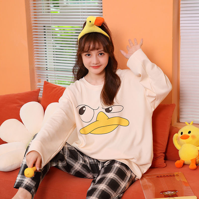 여성용 새 봄, 가을 잠옷, 긴팔 격자 무늬 스위트 홈웨어, 인 스타일 학생 캐주얼 투피스 슈트, 야외에서 착용 가능스토어 가기