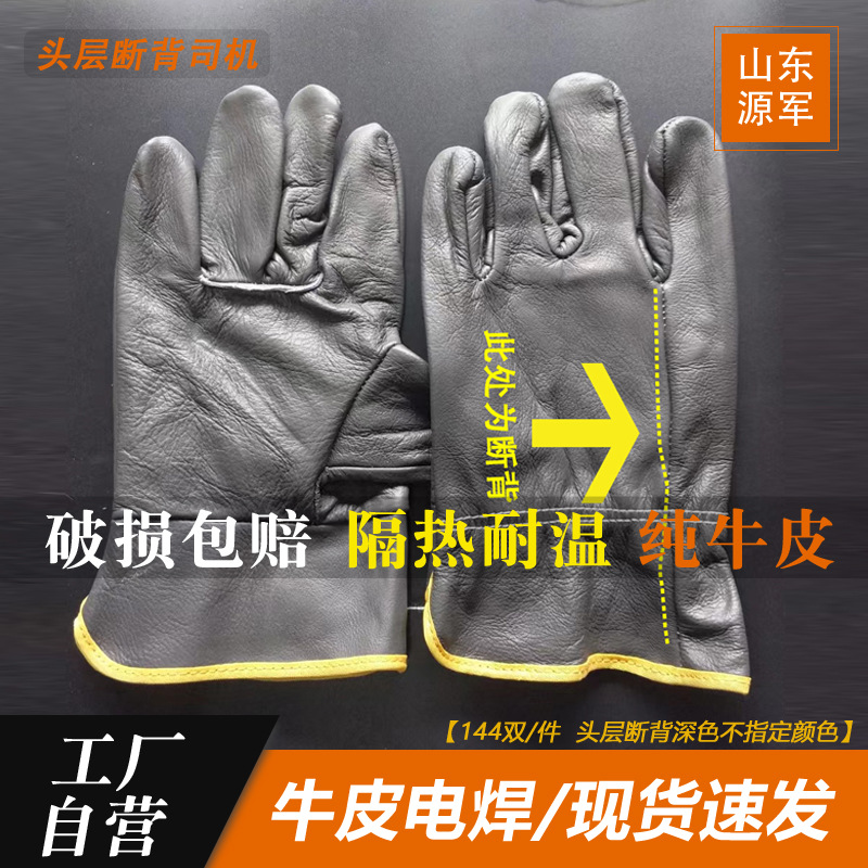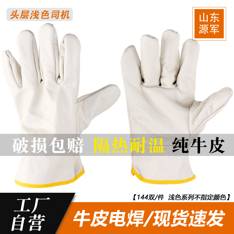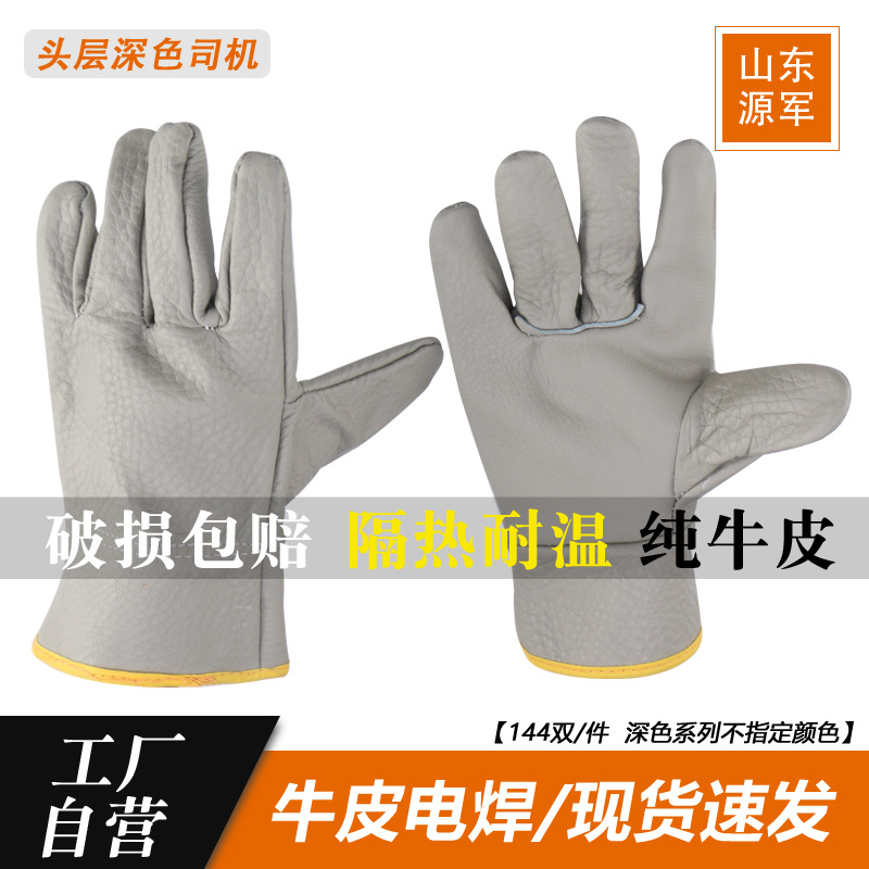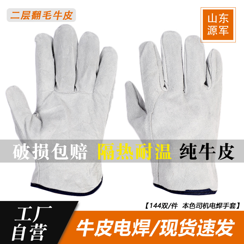 재고 용접기의 노동 보호 장갑 헤드 레이어 2 층 소가죽 짧은 소가죽 운전자 장갑 전체 가죽 용접 장갑