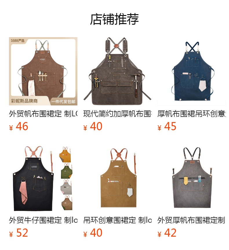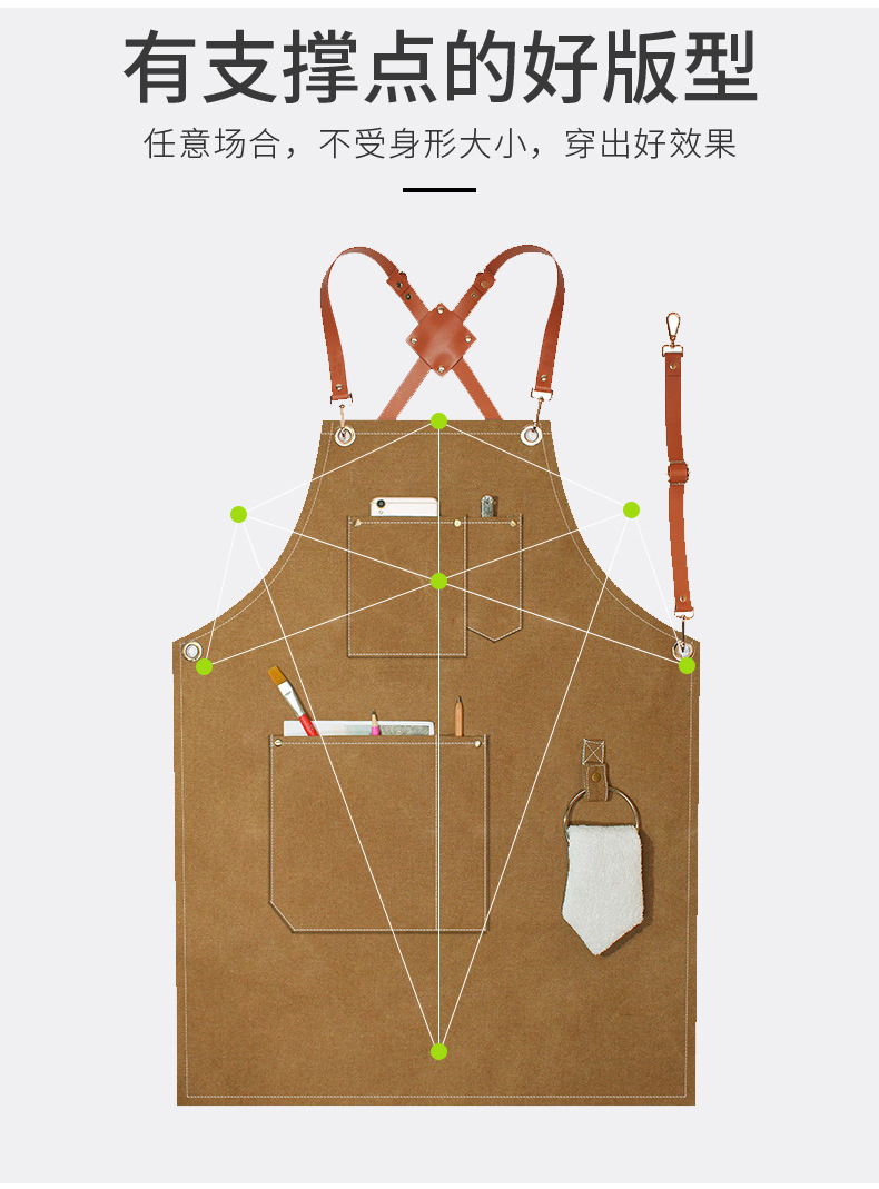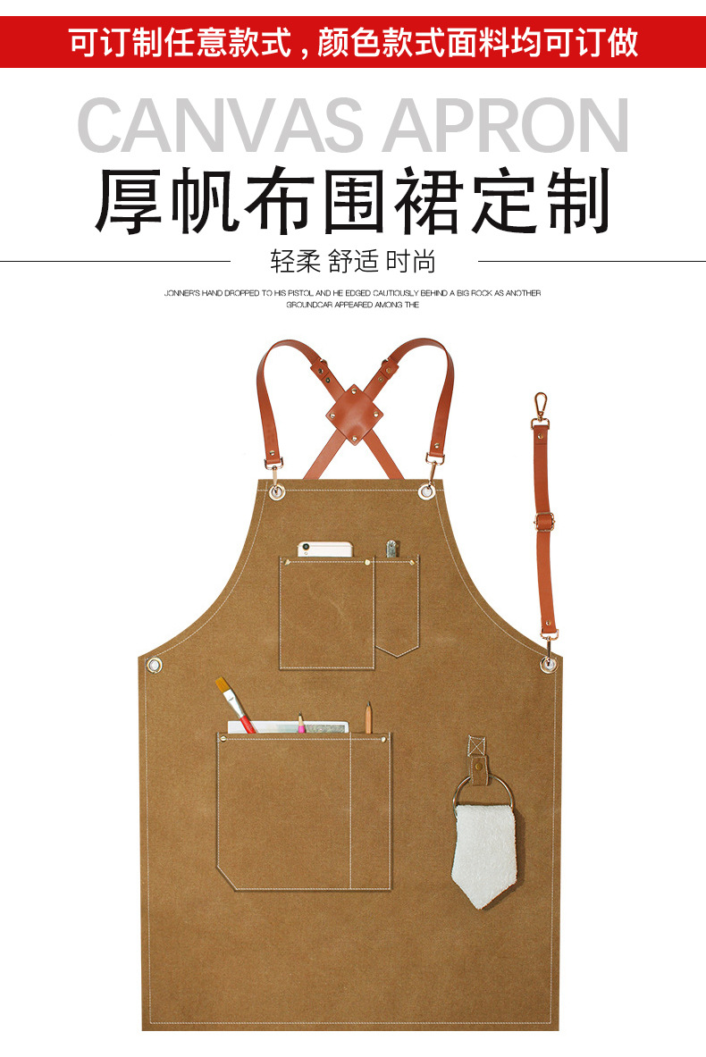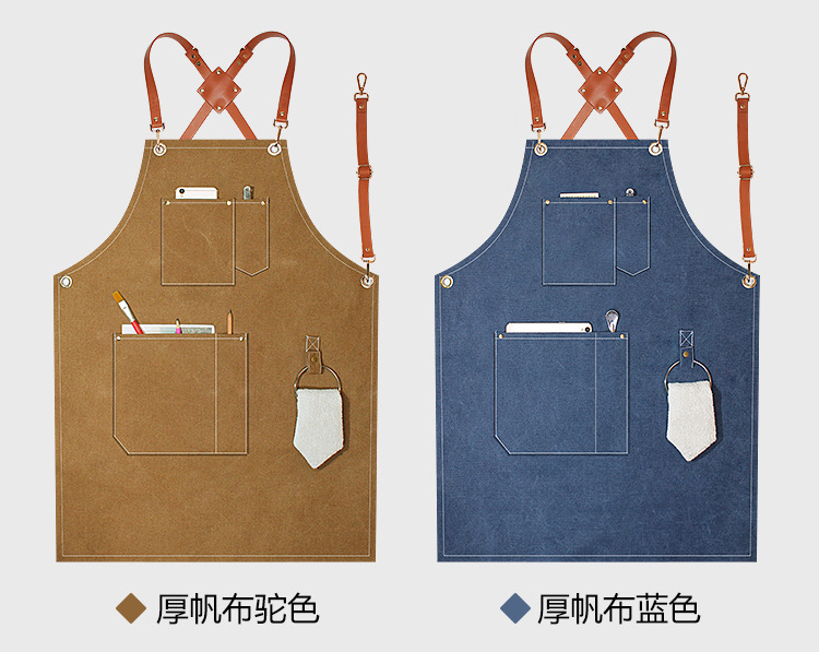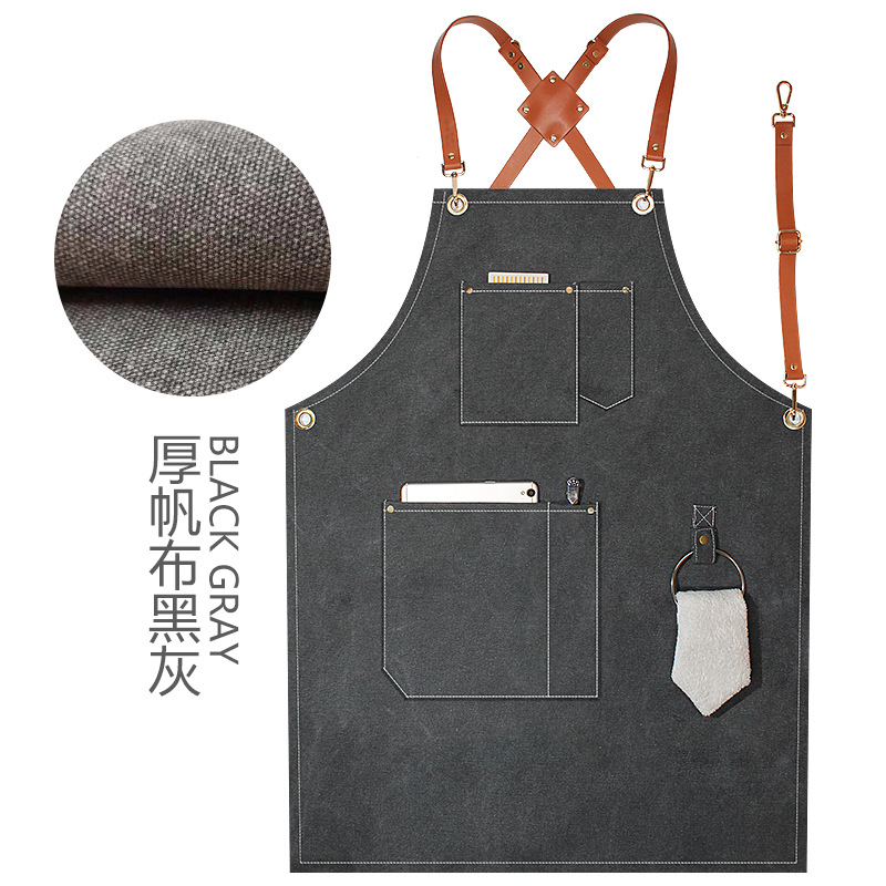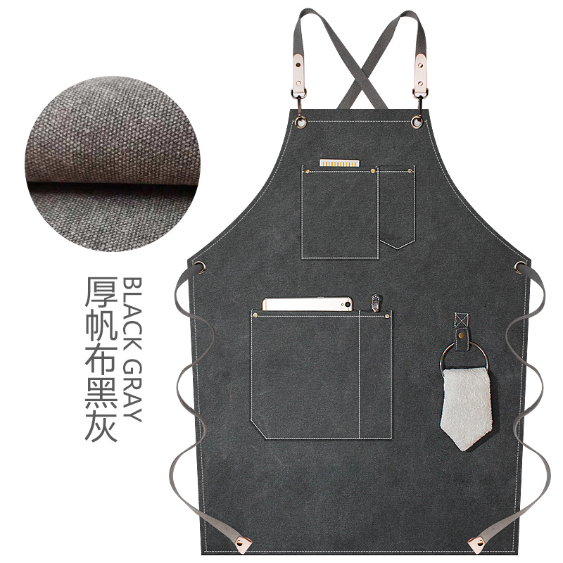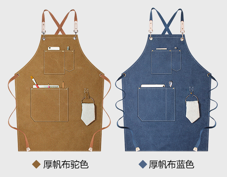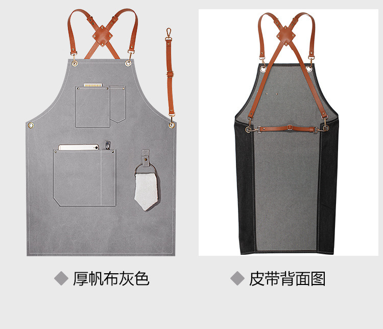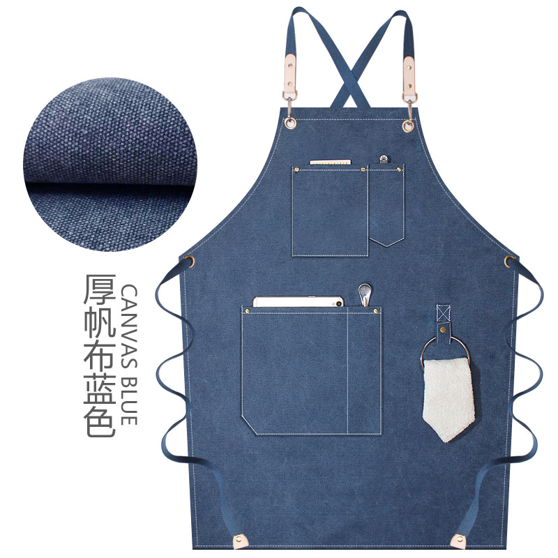 크로스보더 크리에이티브 앞치마 맞춤 로고 레스토랑 커피숍 베이커 작업복 두꺼운 캔버스 앞치마 도매스토어 가기