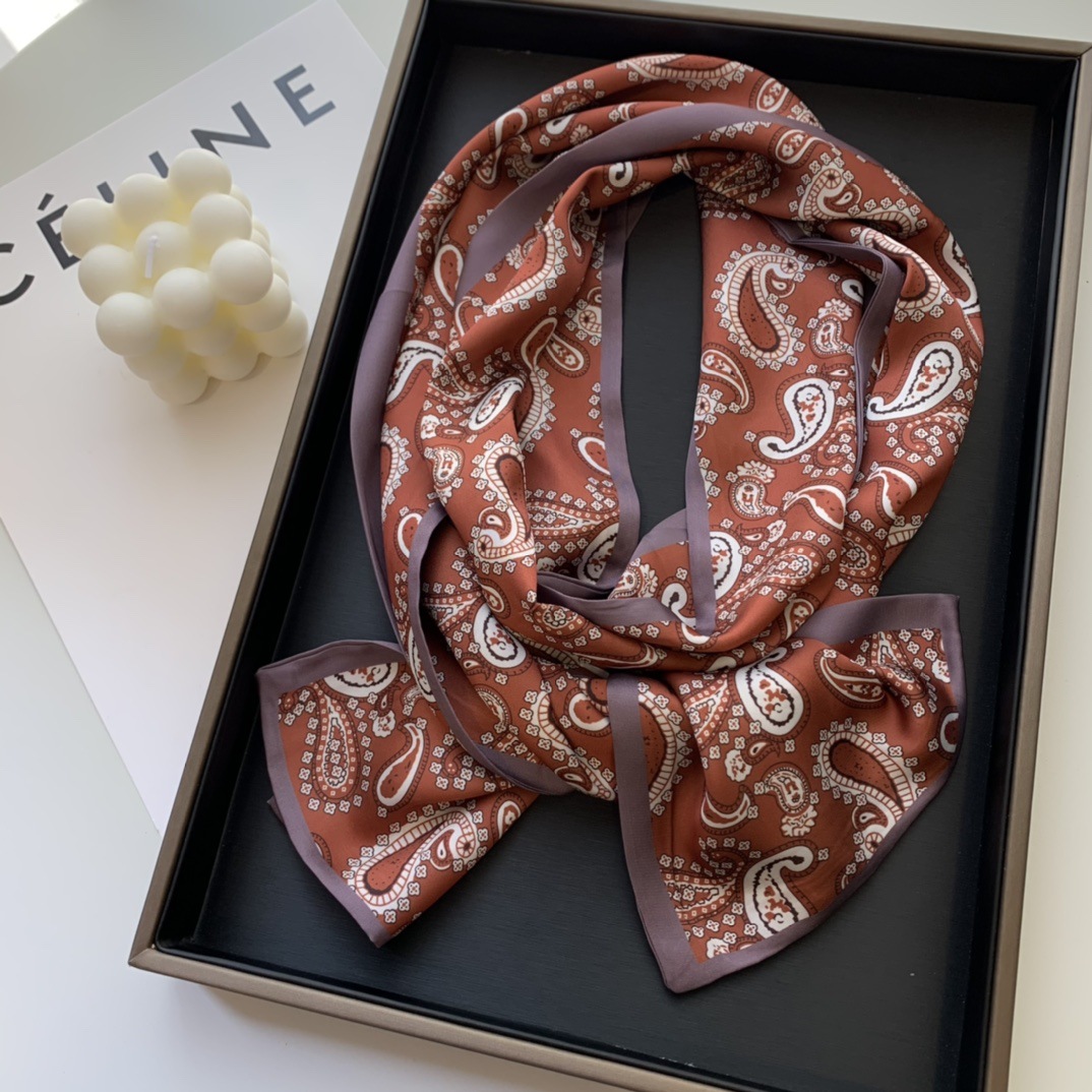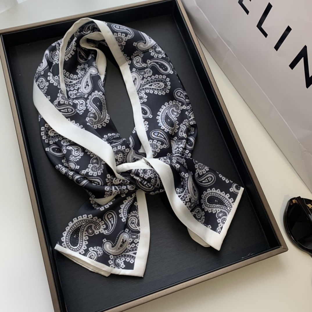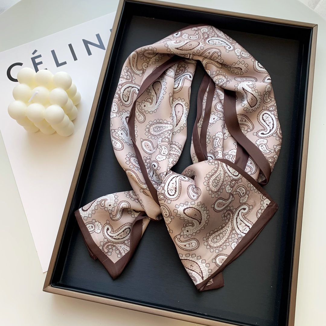 가오 심플 모든 매치 캐슈 토템 패턴 스카프 실크 더블 레이어 양면 인쇄 실크 스카프 긴 헤어 밴드