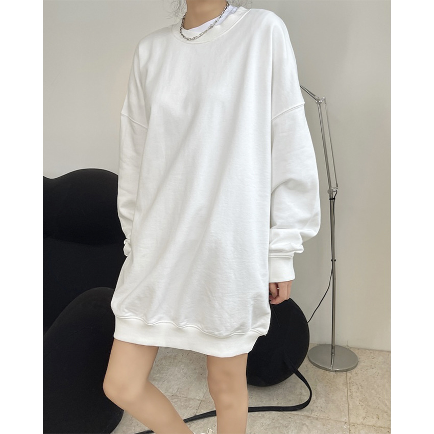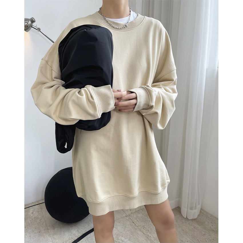 심플하고 세련된 오버 사이즈 롱 라운드 넥 드롭 어깨 긴 소매 스웨터