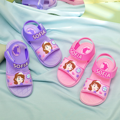 디즈니 냉동 여름 새로운 공주 소녀 신발 미끄럼 방지 만화 홈 욕실 외부 및 외부 착용 샌들