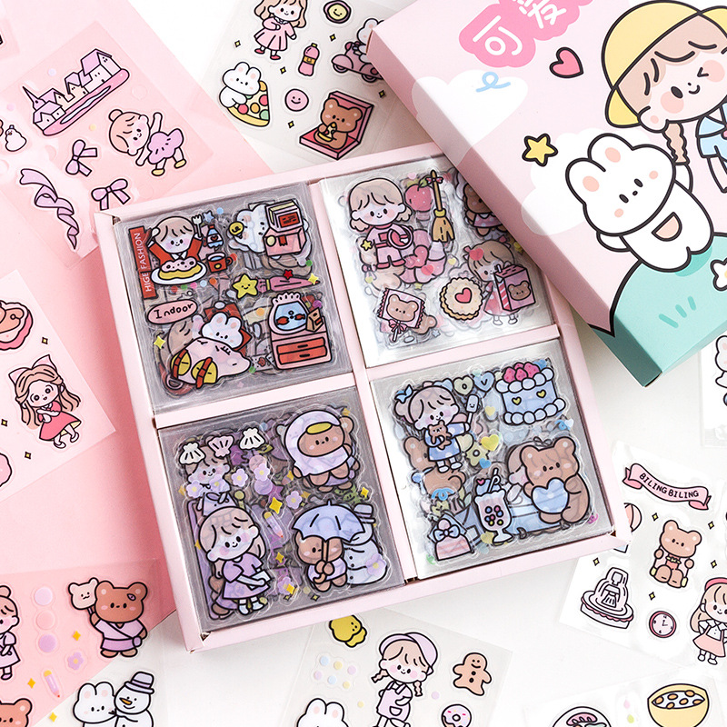 100 손 계정 스티커 세트 방수 투명 컵 작은 패턴 걷는 스틱 in 바람 소녀 심장 손 계정 스티커