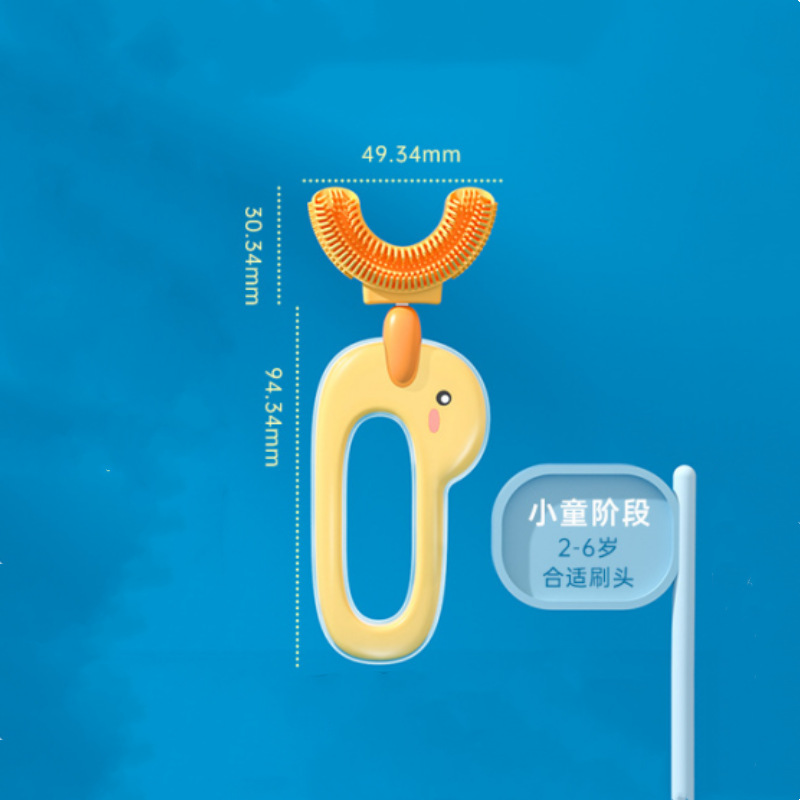 어린이 아기 U 자형 식품 등급 실리콘 칫솔 아기 만화 오리 수동 부드러운 머리 브러시 헤드 제조 업체 도매