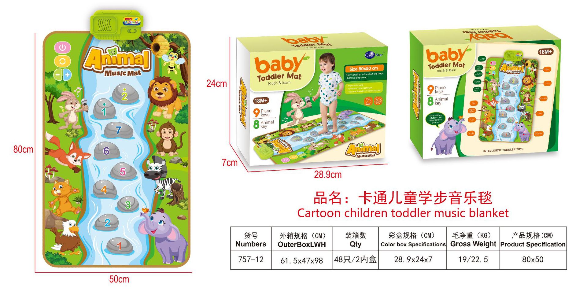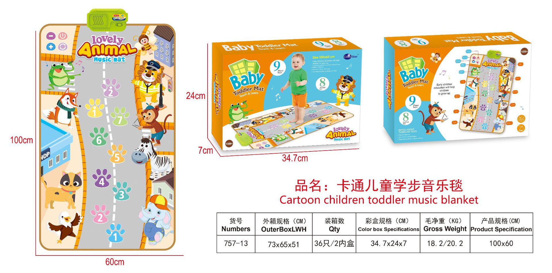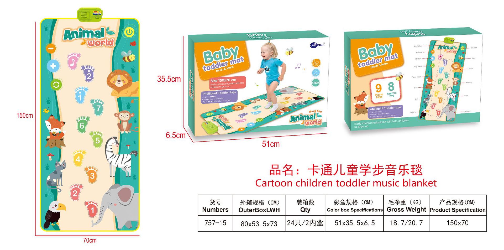 국경 간 뜨거운 판매 만화 어린이 유아 음악 담요 아기 발 피아노 다기능 게임 매트 크롤링 매트