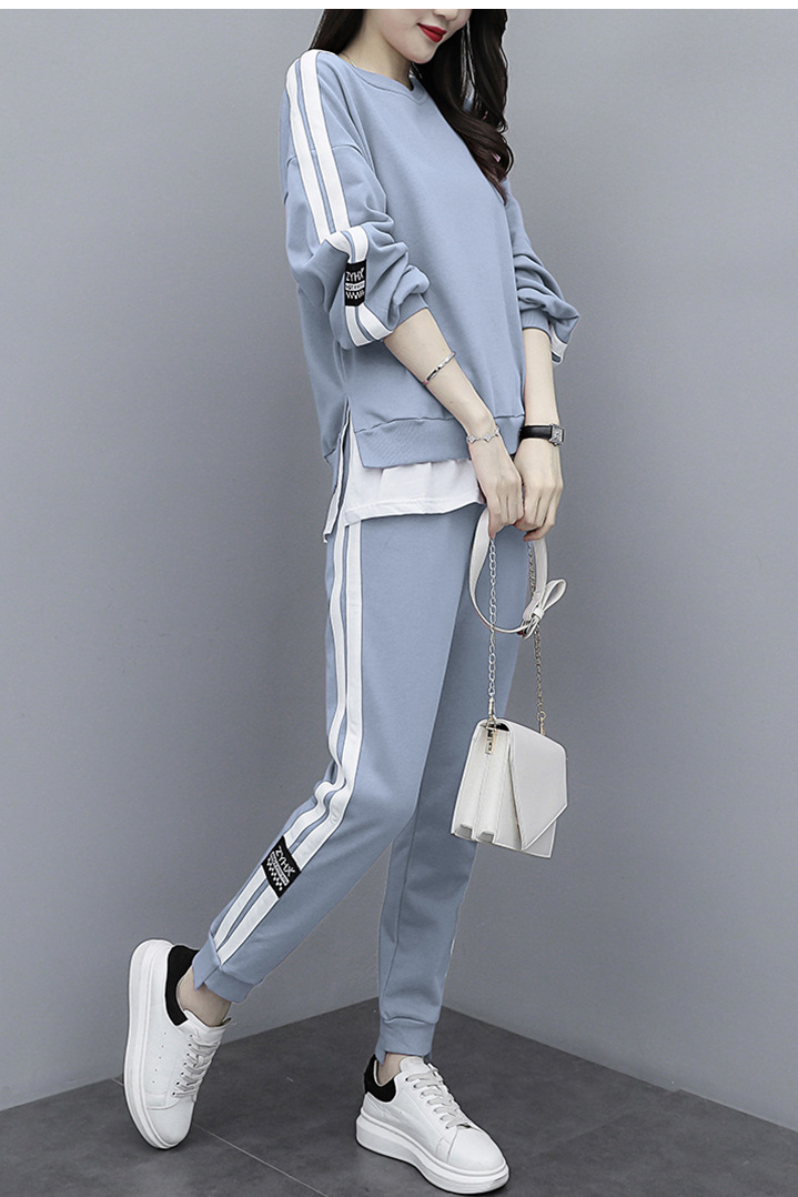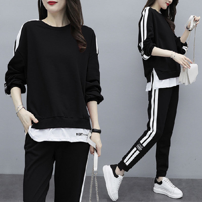 유럽 역 캐주얼 스포츠웨어 세트 여자의 가을 새로운 느슨한 유행 플러스 사이즈 세련된 나이 감소 스웨터 여자 친구 복장