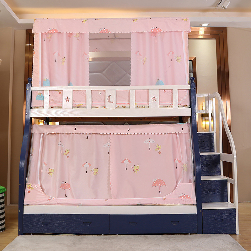 어머니 침대 모기장 상하 이층 사다리꼴 방진 가정용 높은 텔레스코픽 차양 침대 커튼 침대 맨틀 더블 레이어 높은 낮은 침대 책장