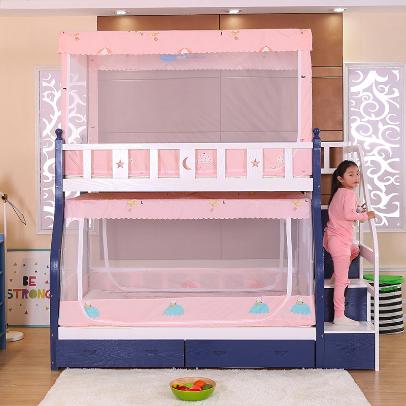 어머니 침대 모기장 상하 이층 사다리꼴 방진 가정용 높은 텔레스코픽 차양 침대 커튼 침대 맨틀 더블 레이어 높은 낮은 침대 책장스토어 가기
