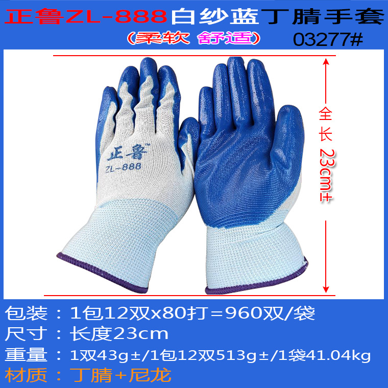 Zhenglu ZL-888 화이트 원사 블루 니트릴 라텍스 장갑 함침 미끄럼 방지 내유성 고무 노동 보호 장갑스토어 가기