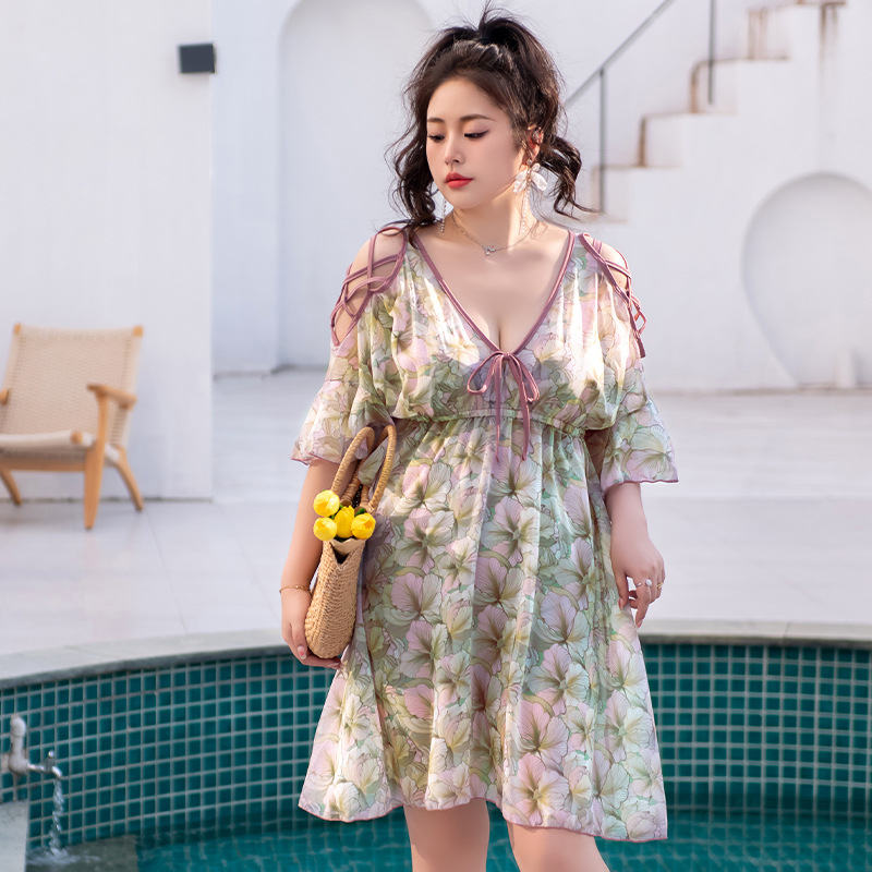새로운 플러스 사이즈 수영복 여성용 스플릿 비키니 쓰리피스 세트 슬림 배꼽 커버 지방 mm200 진 느슨한 보수 수영복스토어 가기