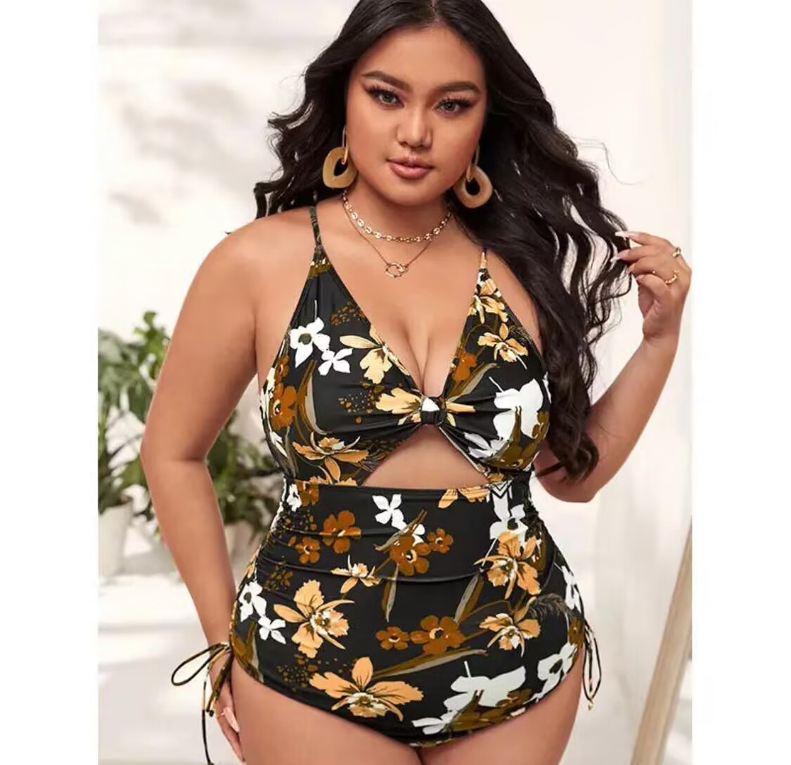 Longqi 2022 크로스 보더 스페셜 새로운 비키니 플리츠 중공 배꼽 커버 슬리밍 플러스 여성용 지방 초대형 원피스 수영복