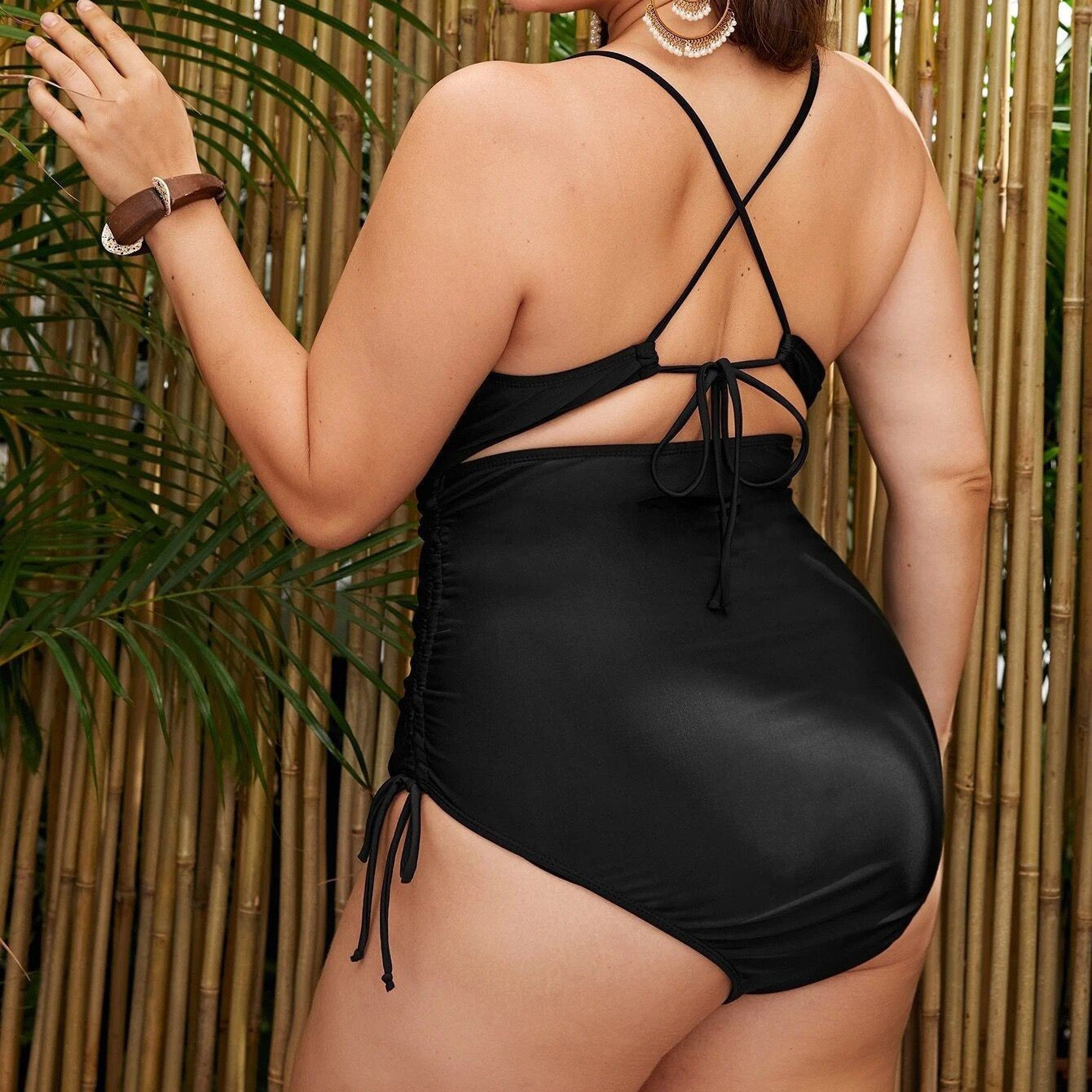 Longqi 2022 크로스 보더 스페셜 새로운 비키니 플리츠 중공 배꼽 커버 슬리밍 플러스 여성용 지방 초대형 원피스 수영복스토어 가기