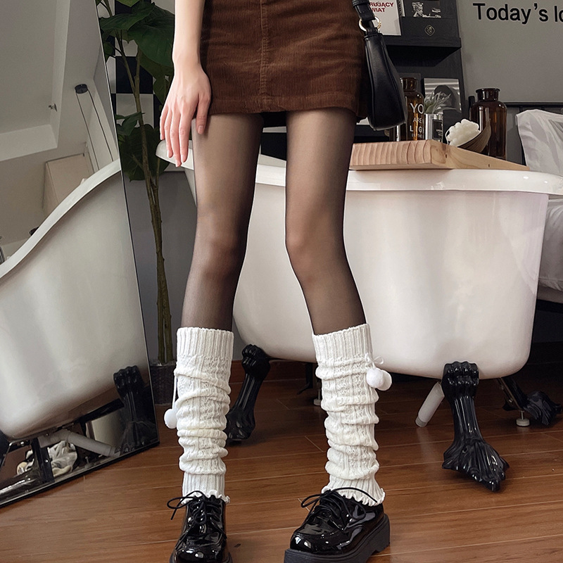 가을과 겨울 일본 스타일 화이트 따뜻한 니트 모피 볼 양말 화이트 실크 JK 로리타와 여성을위한 양말 쌓기스토어 가기