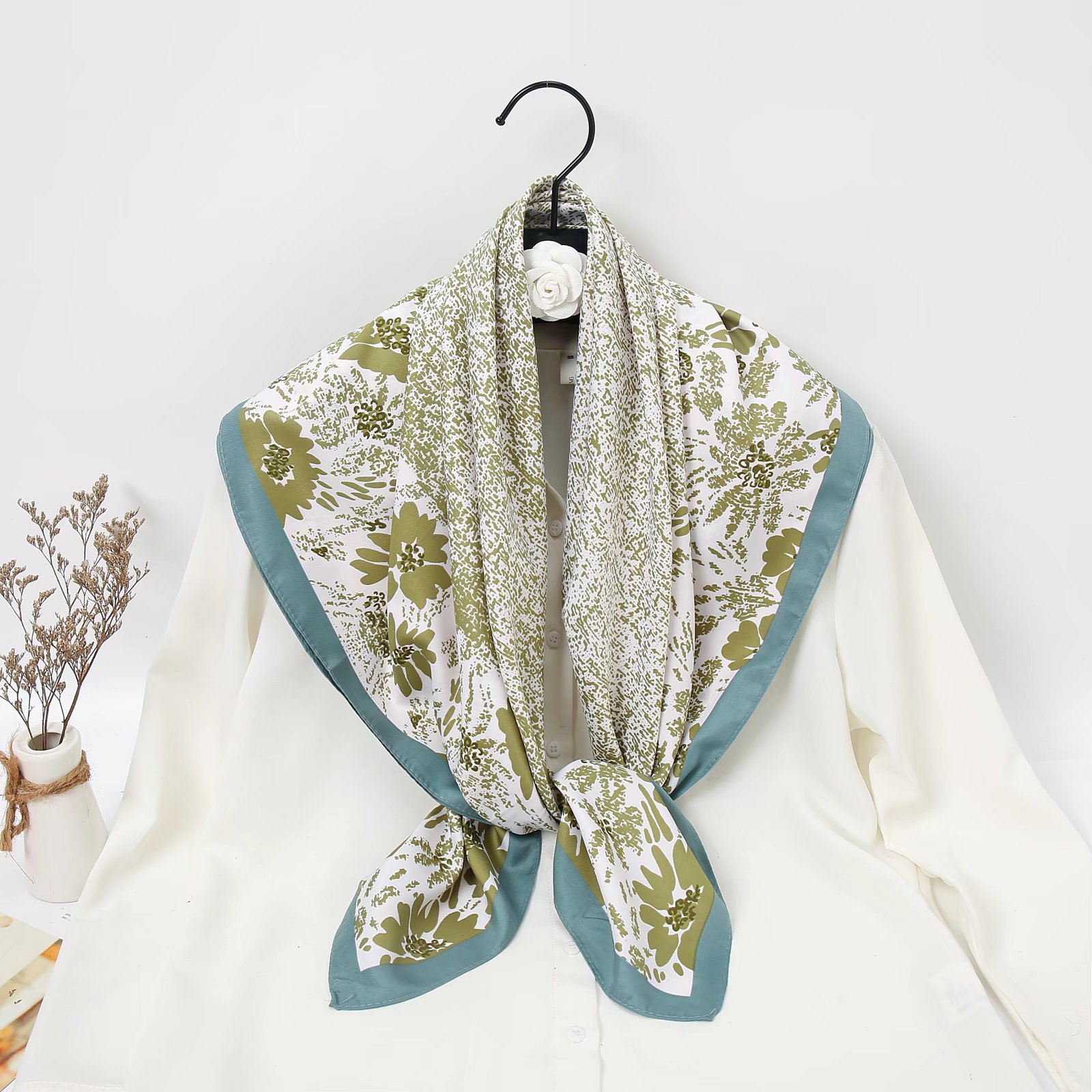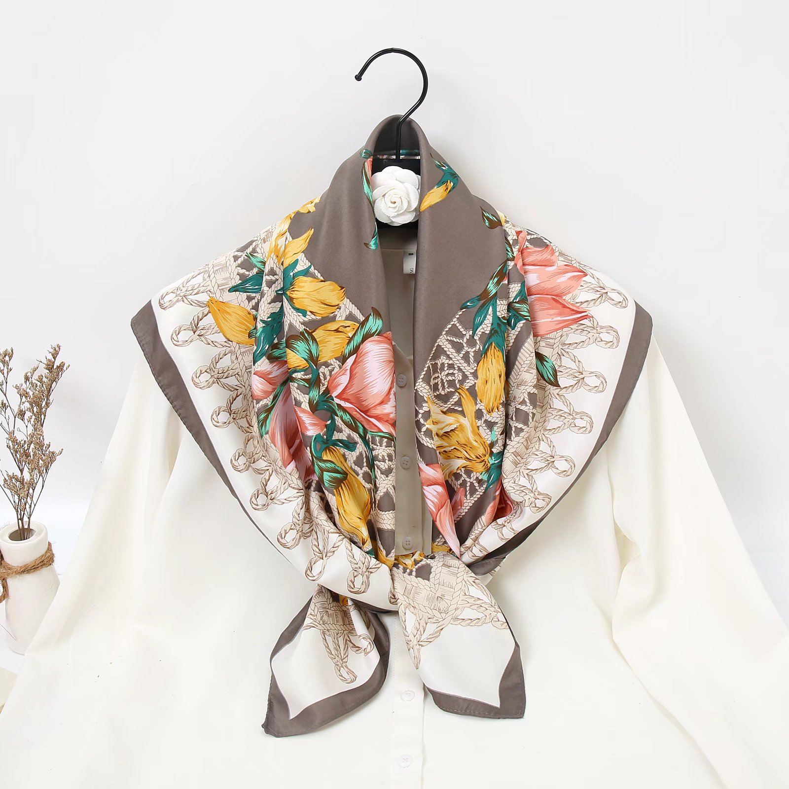 중국 스타일 실크 스카프 여성용 대형 스퀘어 스카프 90x90cm 숄 대형 이중 사용 여성용 봄과 가을 얇은 스카프