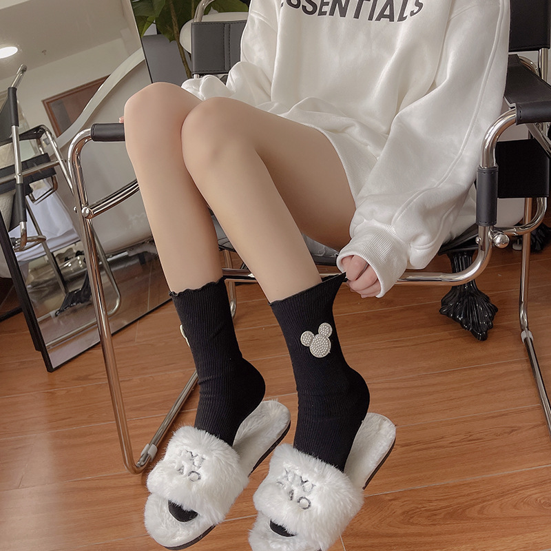 일본의 3 차원 다이아몬드 유행 양말 만화 밀크 화이트 우드 귀 빗질 코튼 파일 짧은 양말 여성용스토어 가기