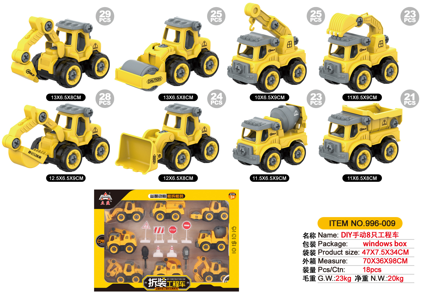 儿童拧螺丝玩具拆装工程车 男孩子DIY拼装仿真挖掘机推土机搅拌车