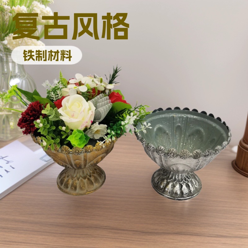 간단한 고전적인 복고풍 금과 실버 심기 금속 화분 장식 철 양동이 다육 질의 화분 꽃 도자기 홈 장식