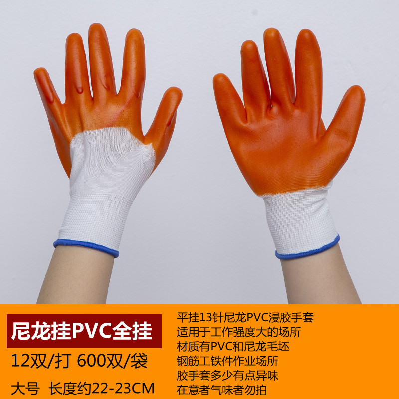 고무 장갑 매달려 접착제 코팅 접착제 담그기 pvc 평면 교수형 완전 담그기 장갑 방수 및 내유성 노동 보호 장갑스토어 가기