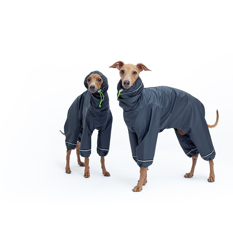 개 비옷 이탈리아 그레이하운드 4 다리 느슨한 Drawstring 조정 가능한 반사 방수 애완 동물 재킷