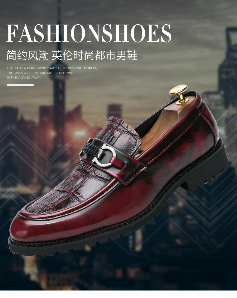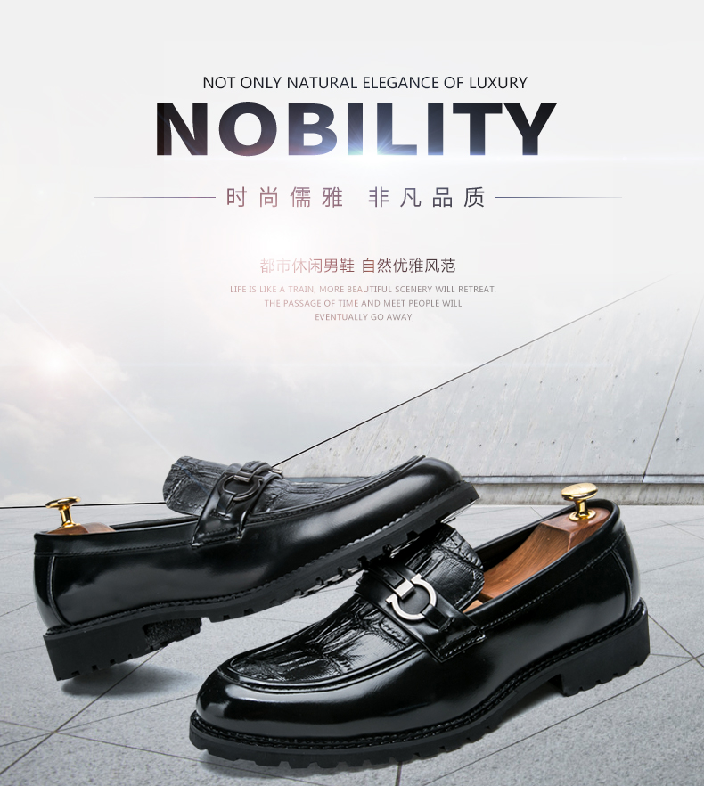 夏季男士商务皮鞋一脚蹬懒人鞋发型师小皮鞋潮鞋百搭透气休闲结婚
