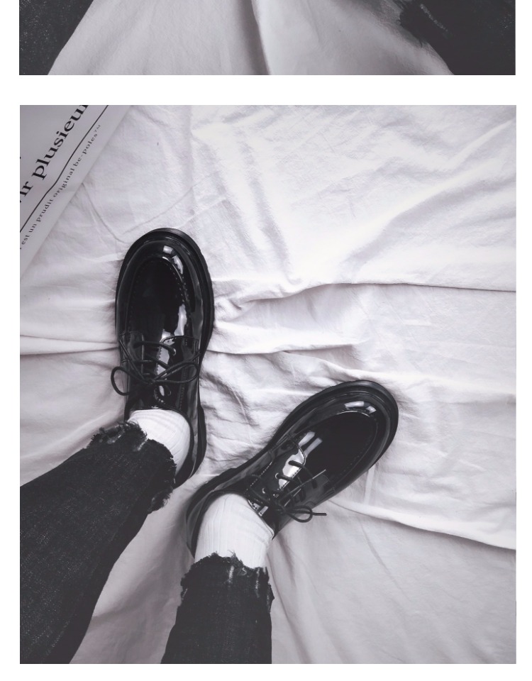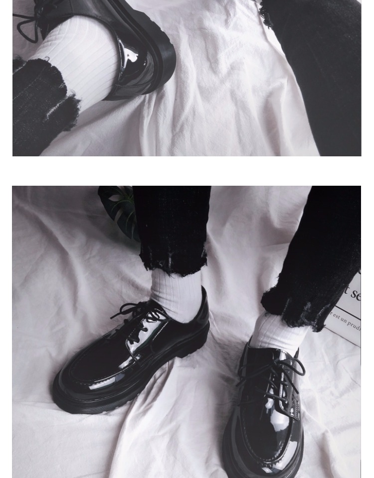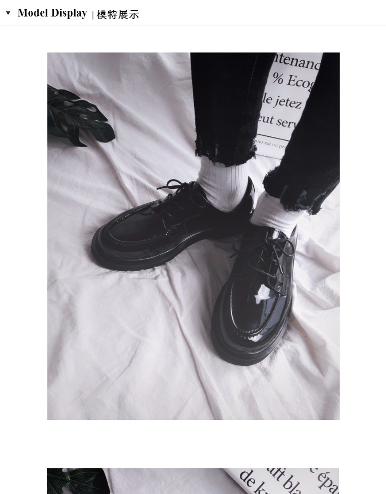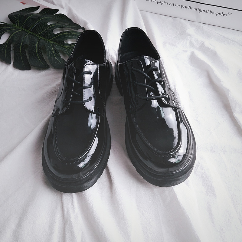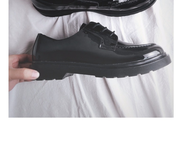 한국 스타일 블랙 밝은 가죽 캐주얼 ulzzang 작은 가죽 신발 영국 하라주쿠 홍콩 스타일 두꺼운 바닥 라운드 발가락 유행 남성 신발스토어 가기