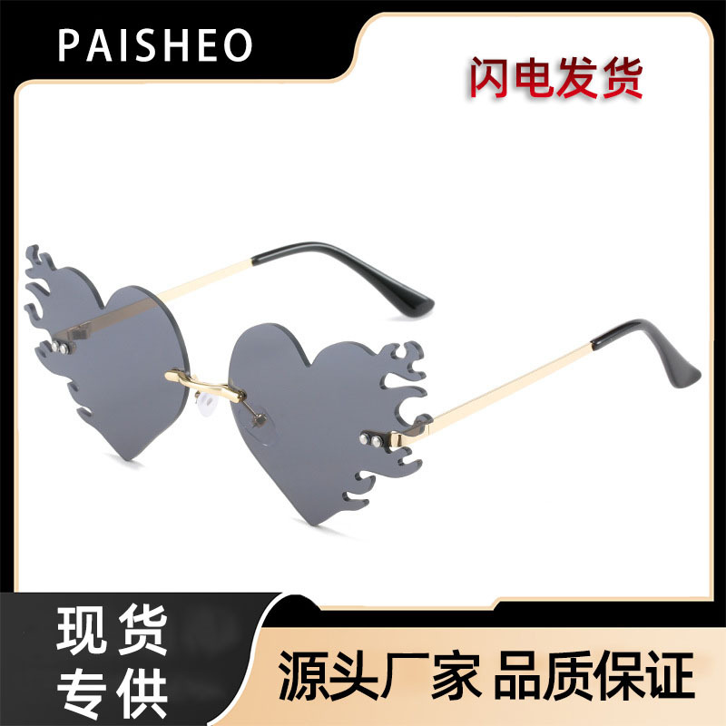 여성 선글라스 도매 유럽과 미국의 성격 프레임리스 다채로운 금속 선글라스 라이브 폭발 남성 고급 센스 안경