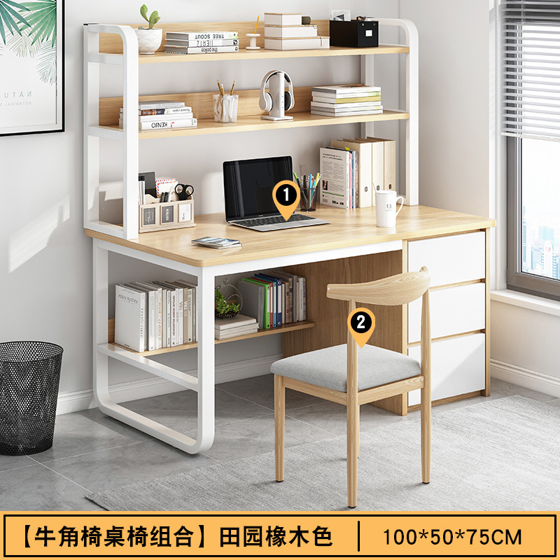 가정용 간단한 컴퓨터 책상 침실 경제적 인 책상 책장 통합 간단한 현대 사무실 학습 책상스토어 가기