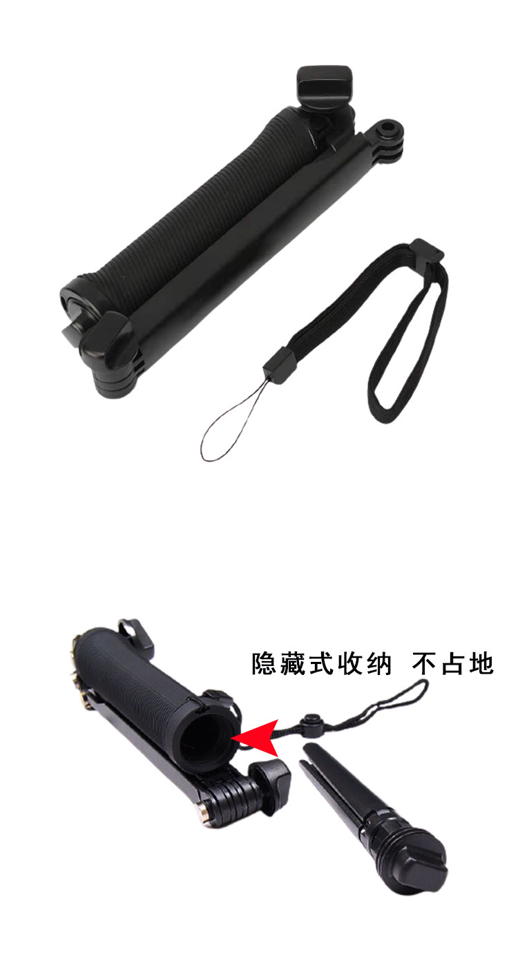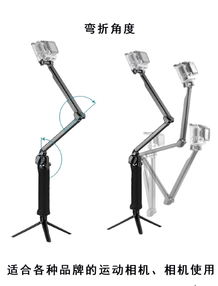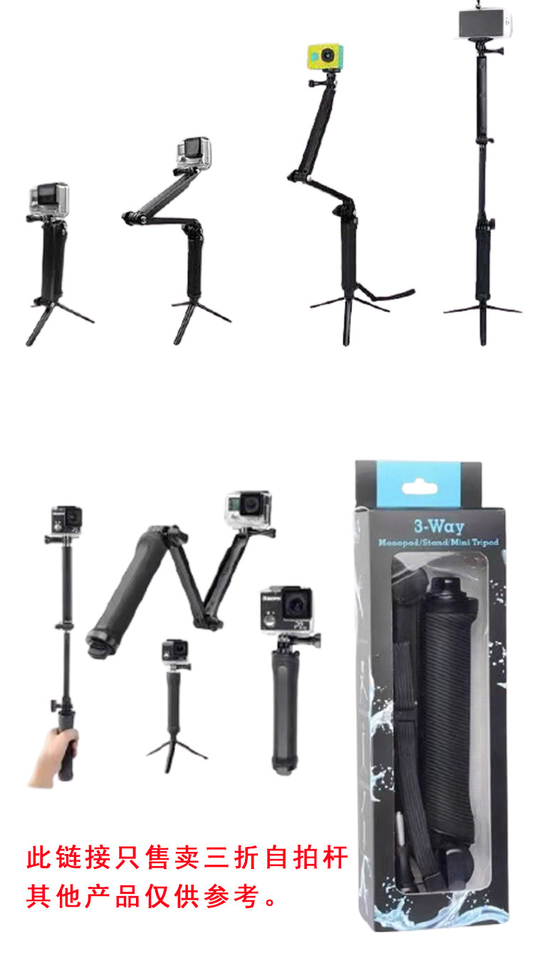 三折自拍杆 运动相机自拍神器 三节延伸杆配三脚架底座