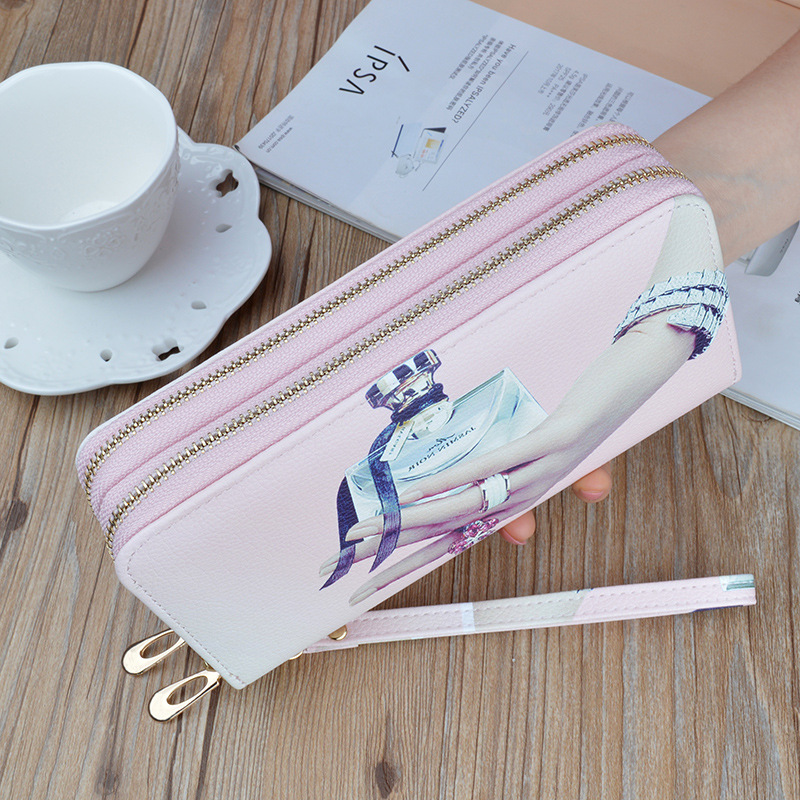 새로운 더블 지퍼 핸드 지갑 여성용 긴 소프트 지갑 유행 인쇄 대용량 더블 지갑 휴대 전화 가방