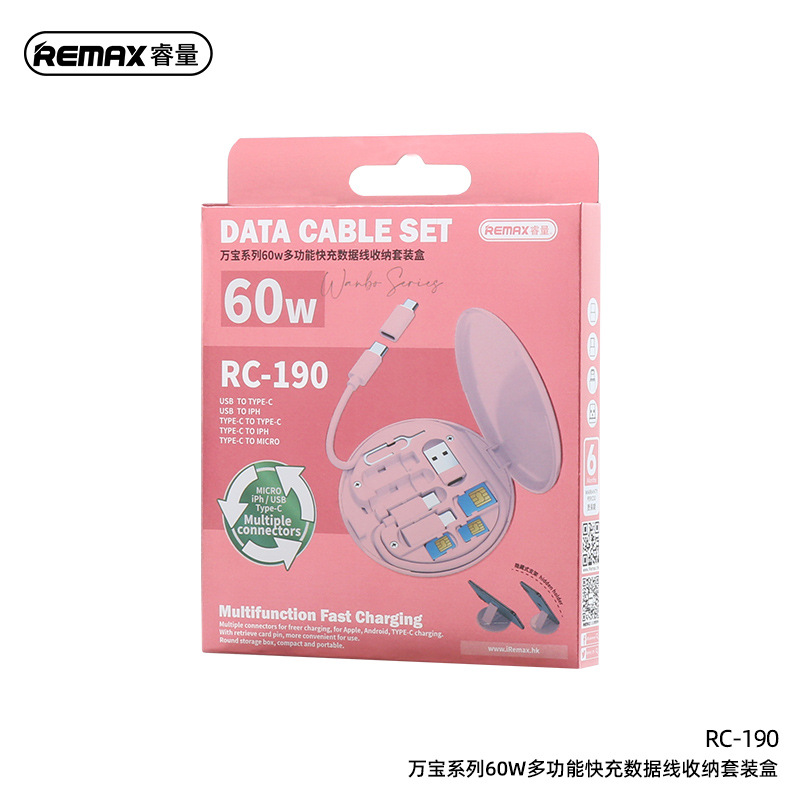 REMAX Wanbao 60w 고속 충전 다기능 데이터 케이블 보관함 세트는 Apple Android Huawei RC-190에 적합합니다.