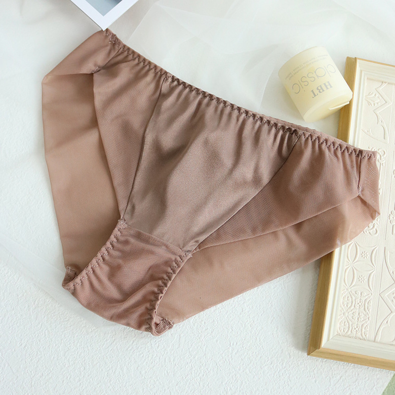 탱지 실크 새틴 팬티 여성의 사치스럽고 편안한 뽕나무 실크 팬티 반바지 중간 허리 얇은 통기성 원활한