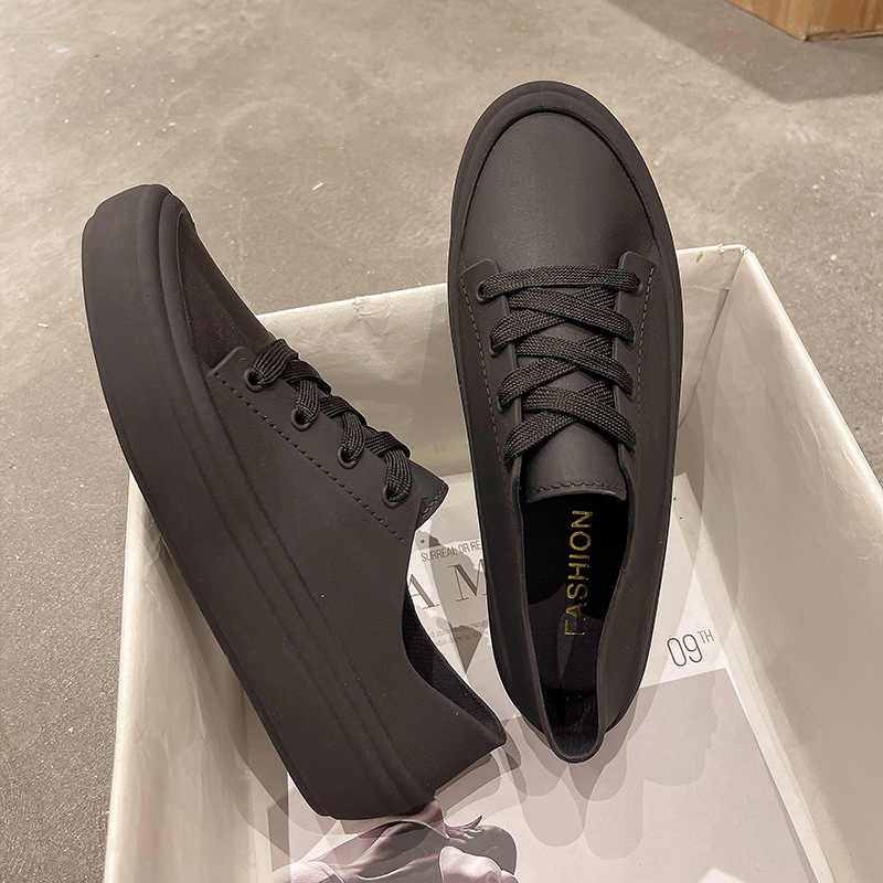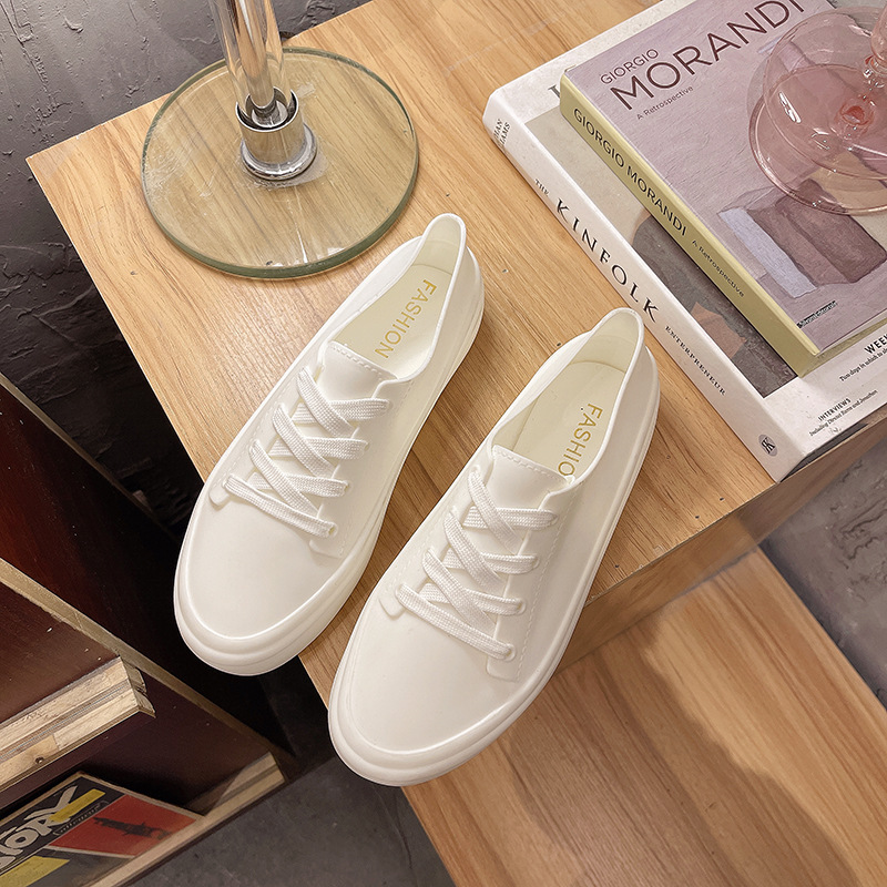 새로운 패션 사계절 신발 끈 학생 흰색 신발 여성용 pvc 간단한 단색 여성용 얕은 입 비 신발스토어 가기