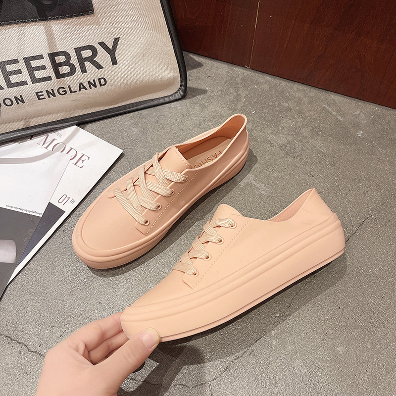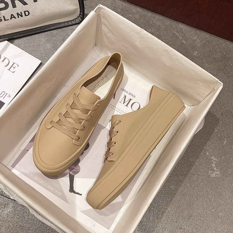 새로운 패션 사계절 신발 끈 학생 흰색 신발 여성용 pvc 간단한 단색 여성용 얕은 입 비 신발