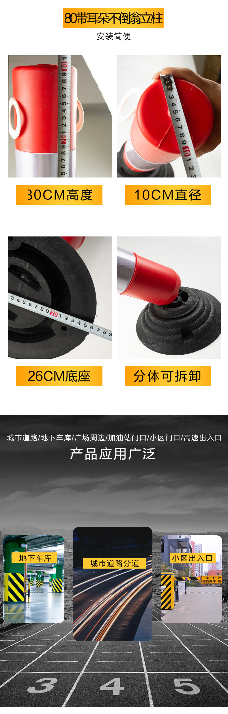 귀가있는 텀블러 플라스틱 경고 칼럼 고무 경고 칼럼 반사 경고 칼럼 충돌 방지 탄성 기둥 도로 더미스토어 가기