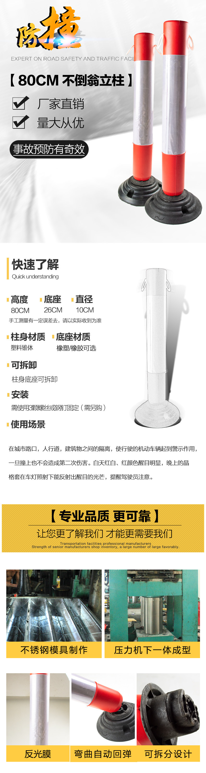 귀가있는 텀블러 플라스틱 경고 칼럼 고무 경고 칼럼 반사 경고 칼럼 충돌 방지 탄성 기둥 도로 더미