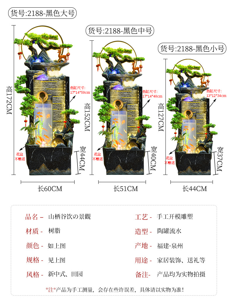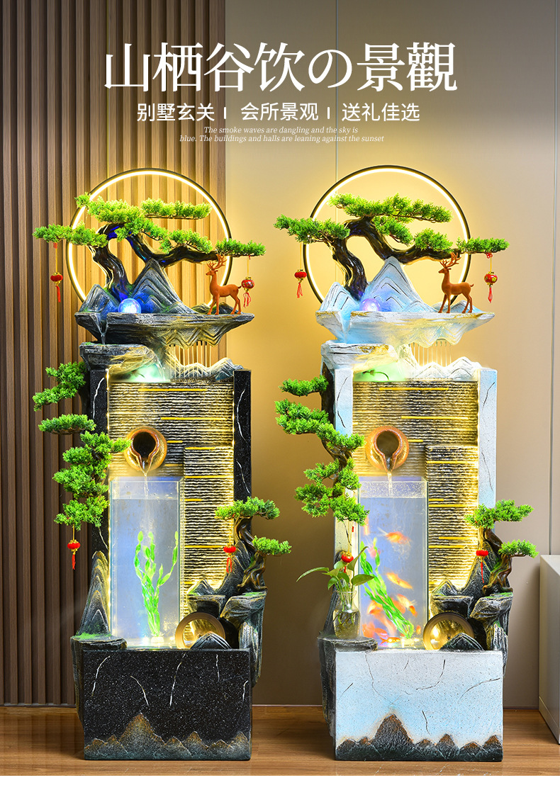 중국 스타일의 바위 물 분수 장식품 거실 사무실 풍수 휠 오프닝 집들이 풍경 장식 선물