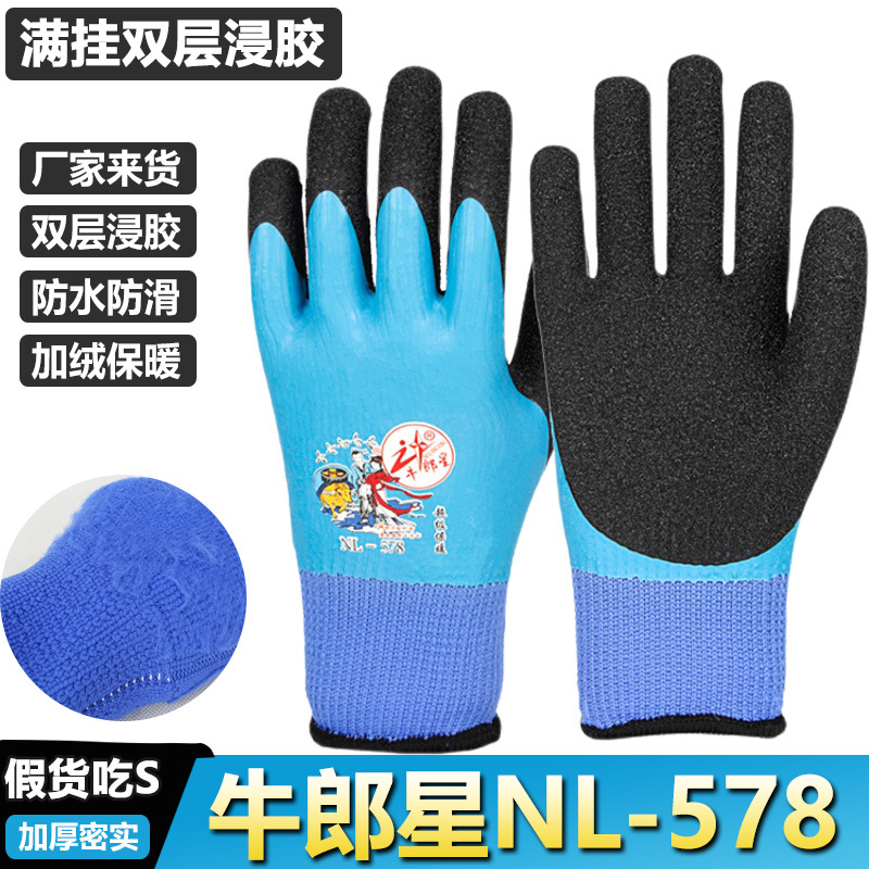 우수한 품질의 578 플러스 벨벳 라텍스 장갑, 작업용 방수, 미끄럼 방지, 내마모성 고무 장갑