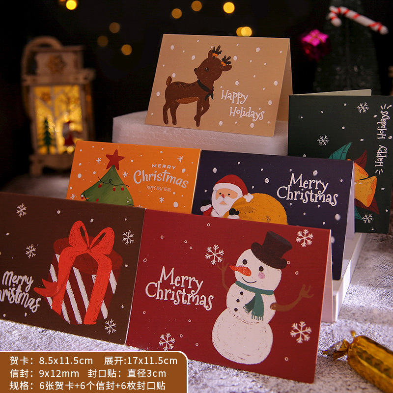• 정사각형의 작은 신선한 크리스마스 카드/봉투 + 봉인 스티커